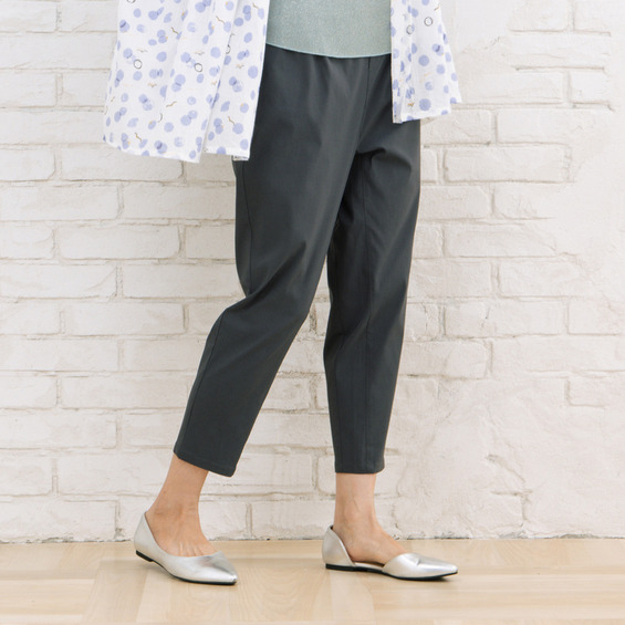 ゆるやかなテーパードラインは、体型を拾わず、すっきりとした印象を与えます。