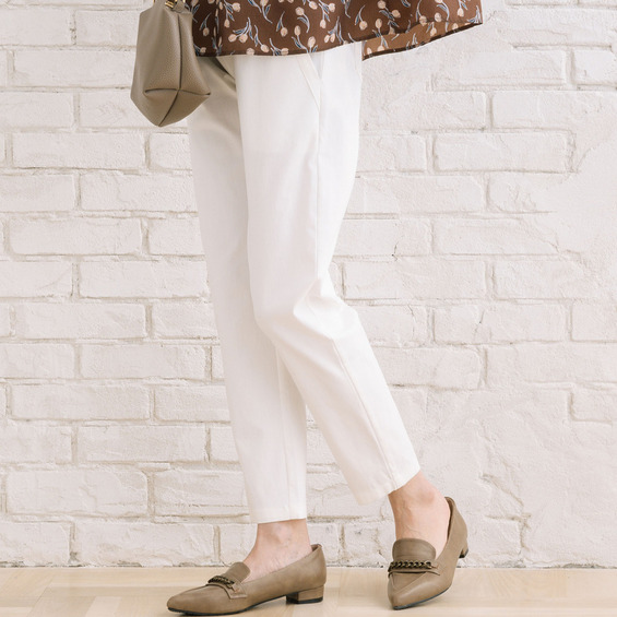 脚のラインにほどよくフィットするスキニーシルエットで、全体をすっきりとした印象に。