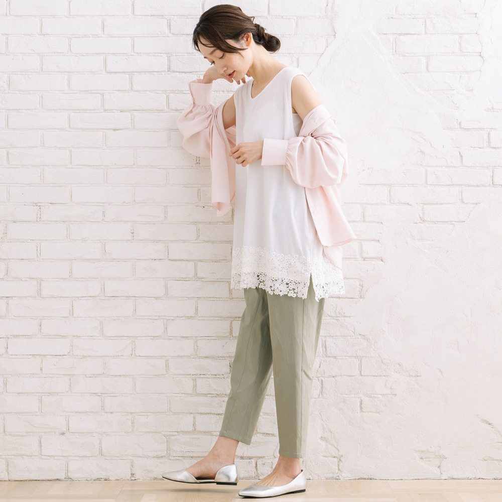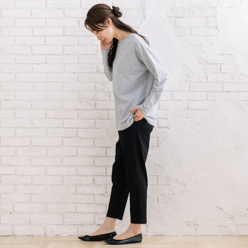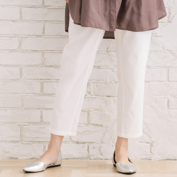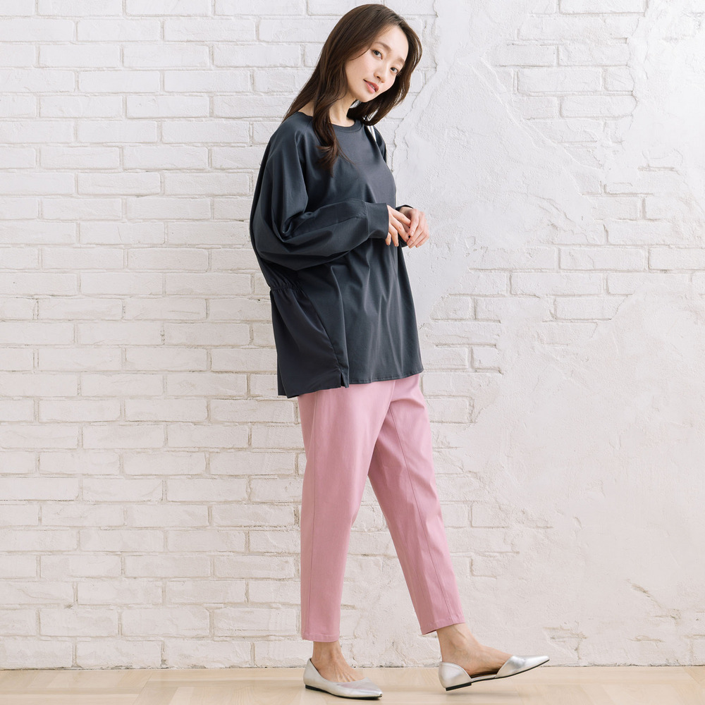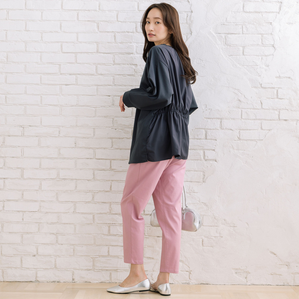 腰まわりはほどよくゆとりを持たせ、裾に向かってすっきりとしたテーパードシルエット。