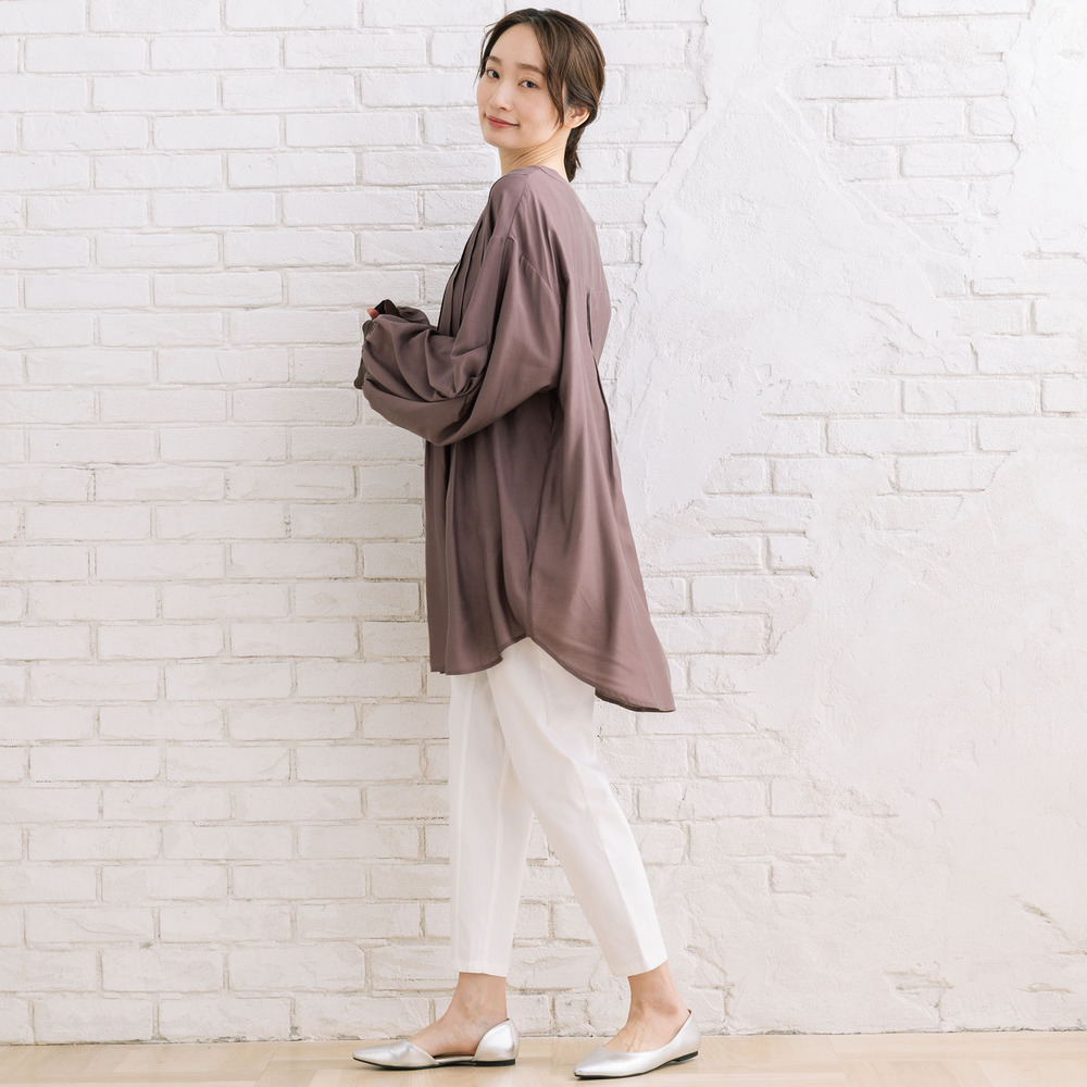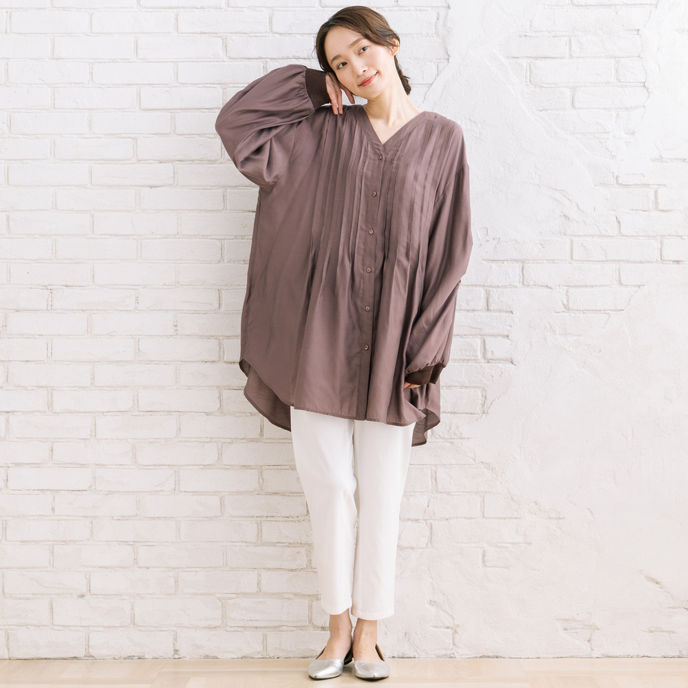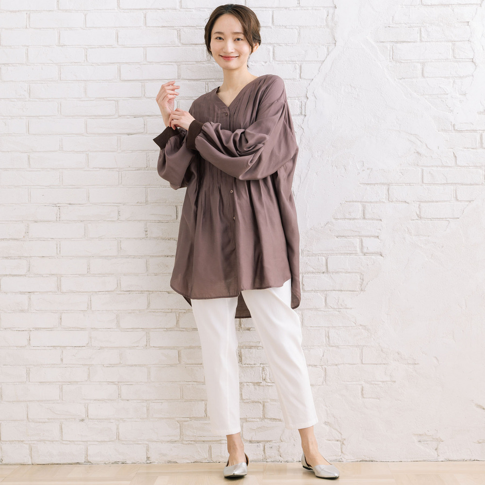 ブラウスやシャツを合わせて、上品な大人カジュアルに。