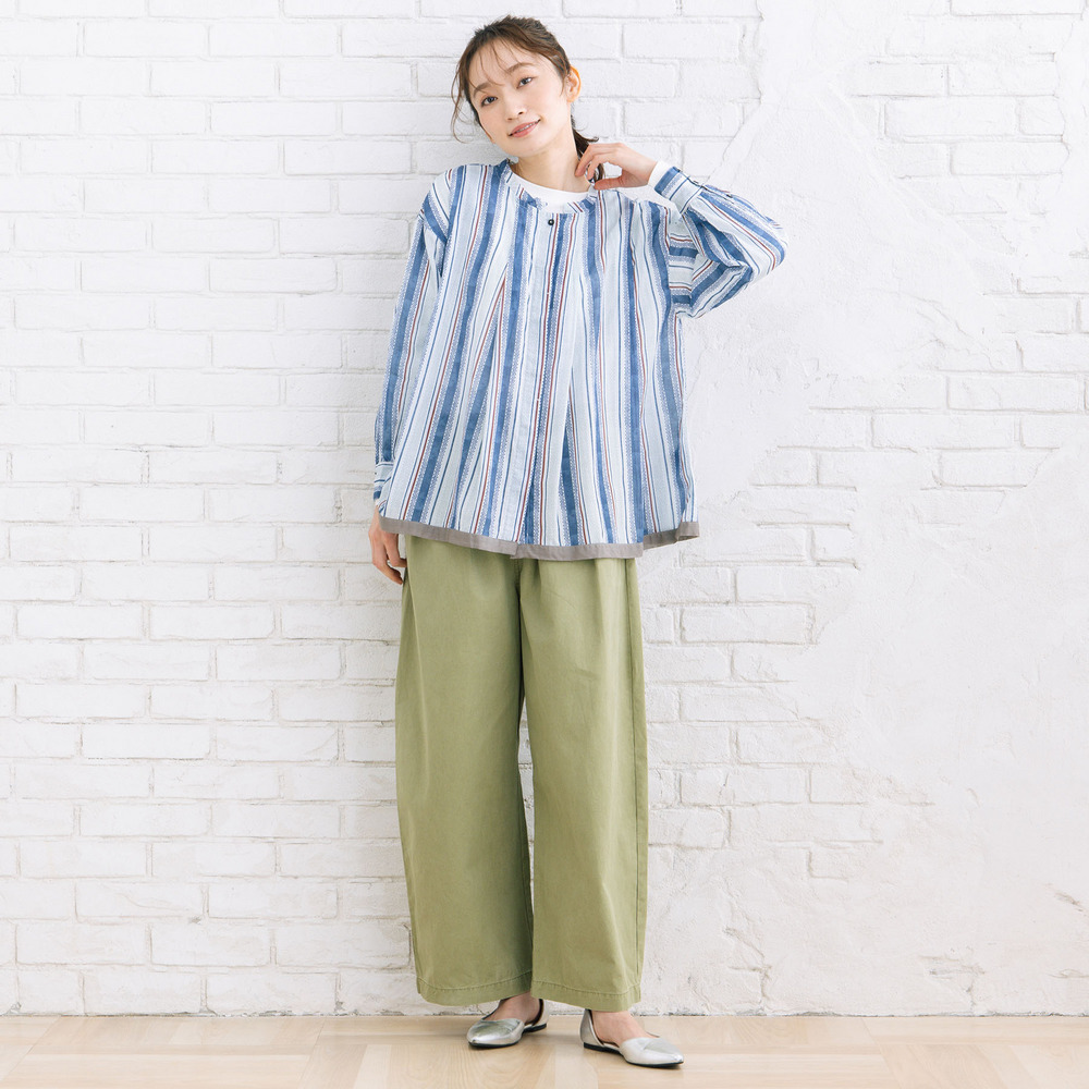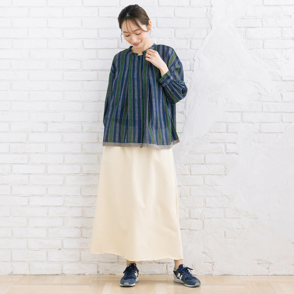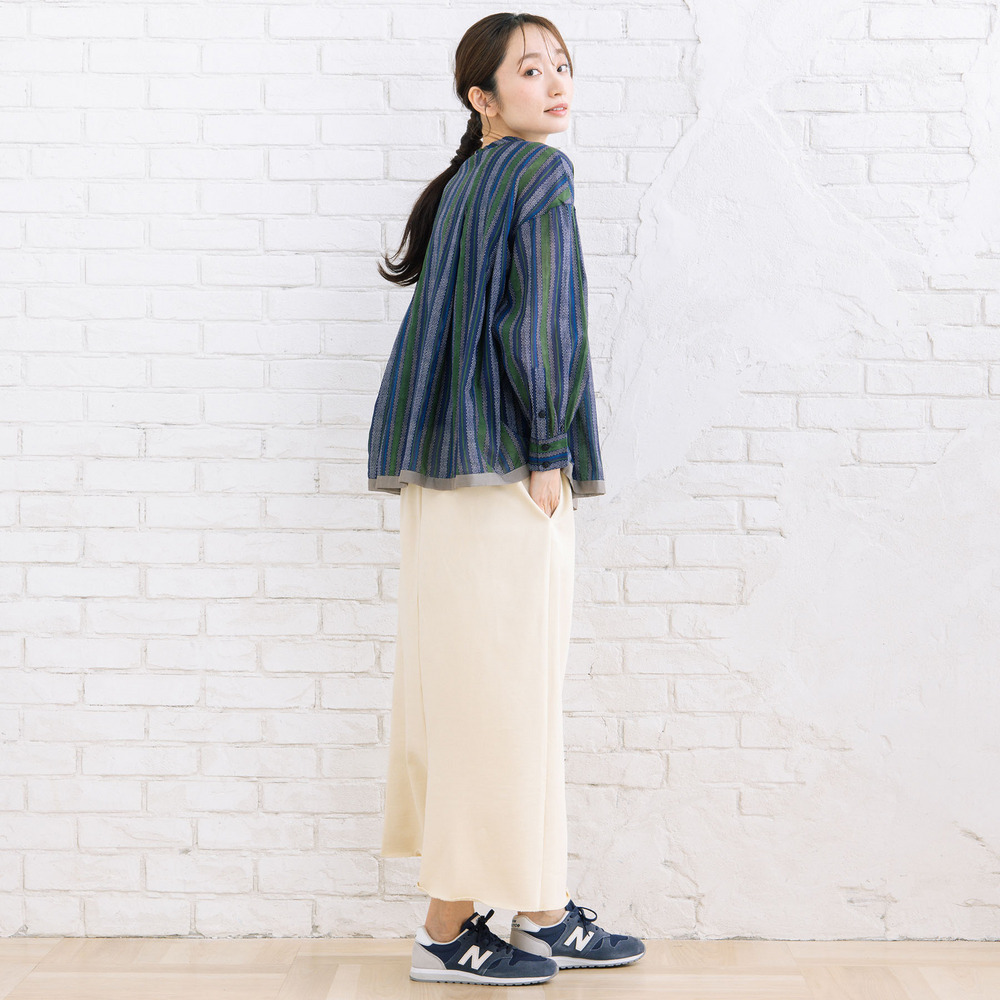 無地のパンツやスカートと合わせて、ブラウスを主役に。