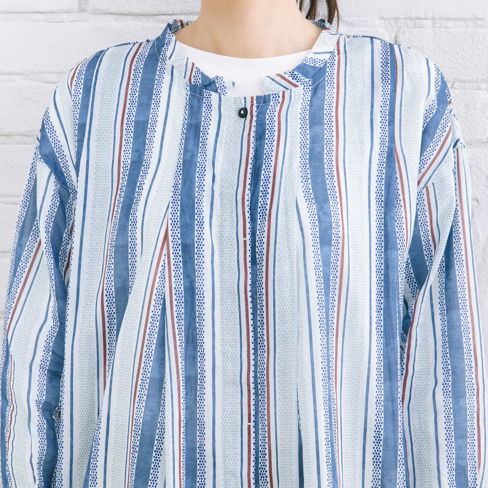 • ドットストライププリントブラウス1