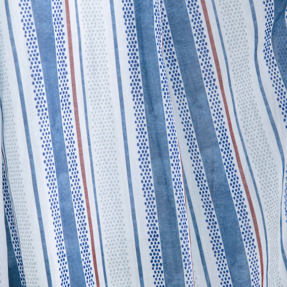 ドットを織り交ぜたストライプ柄が、縦のラインを印象づけるデザイン。