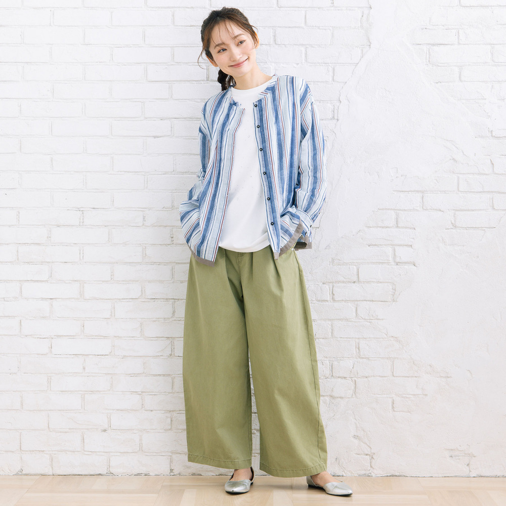ワイドパンツと合わせれば、リラックス感のある大人カジュアルにもまとまります。