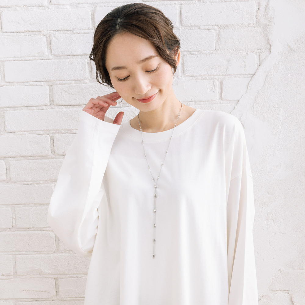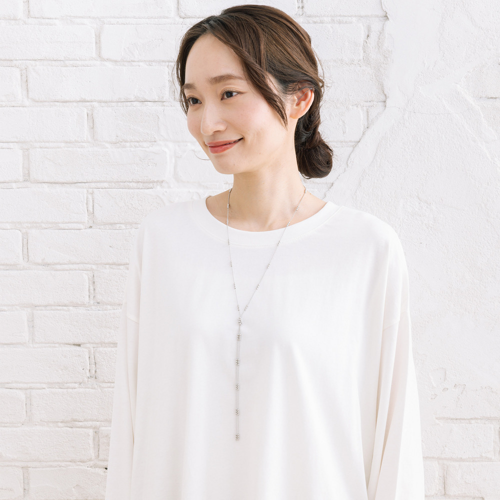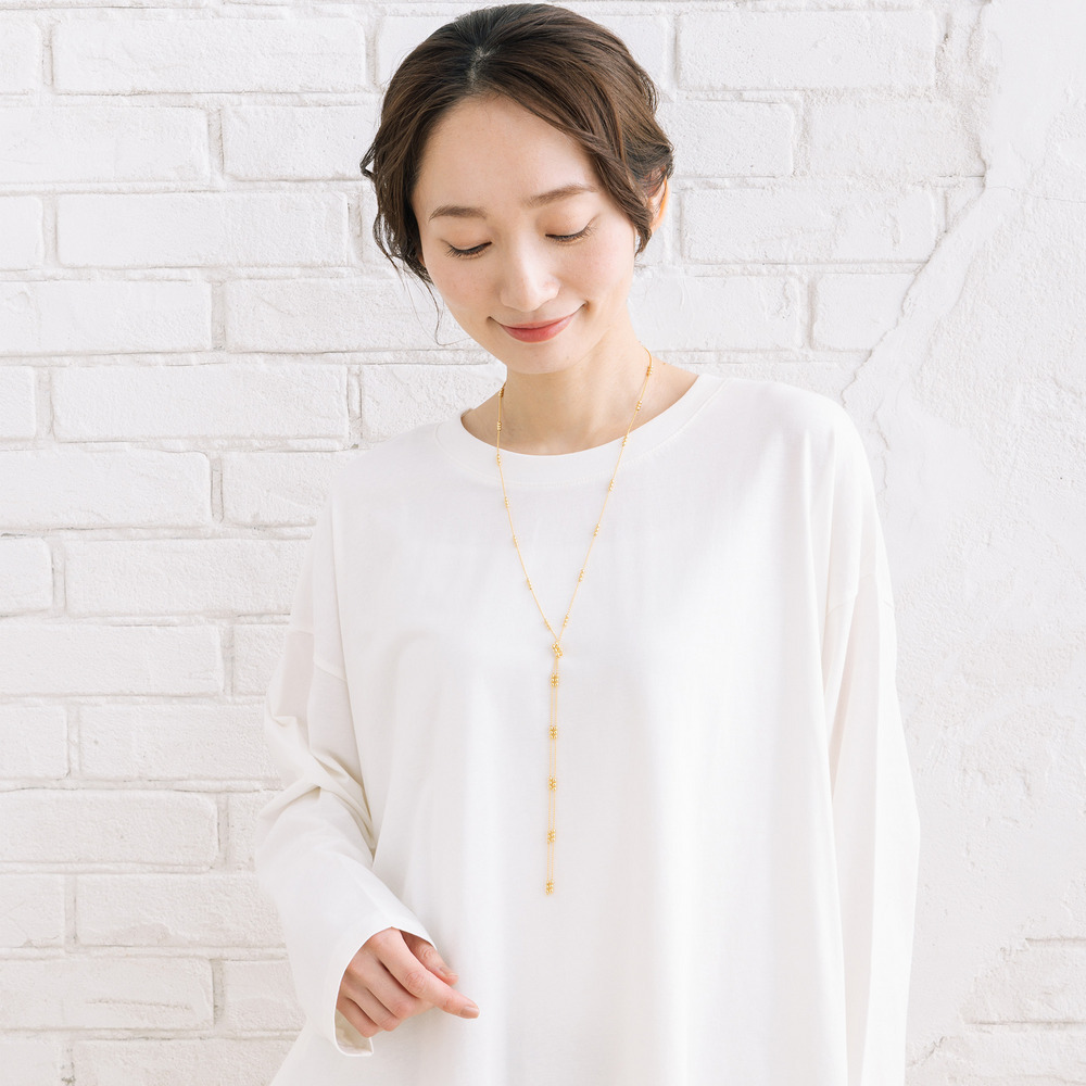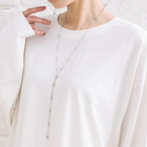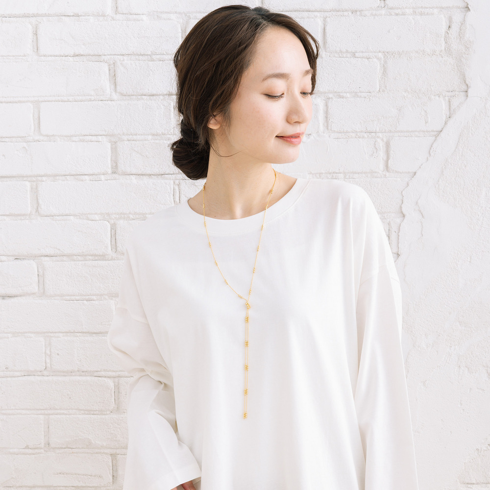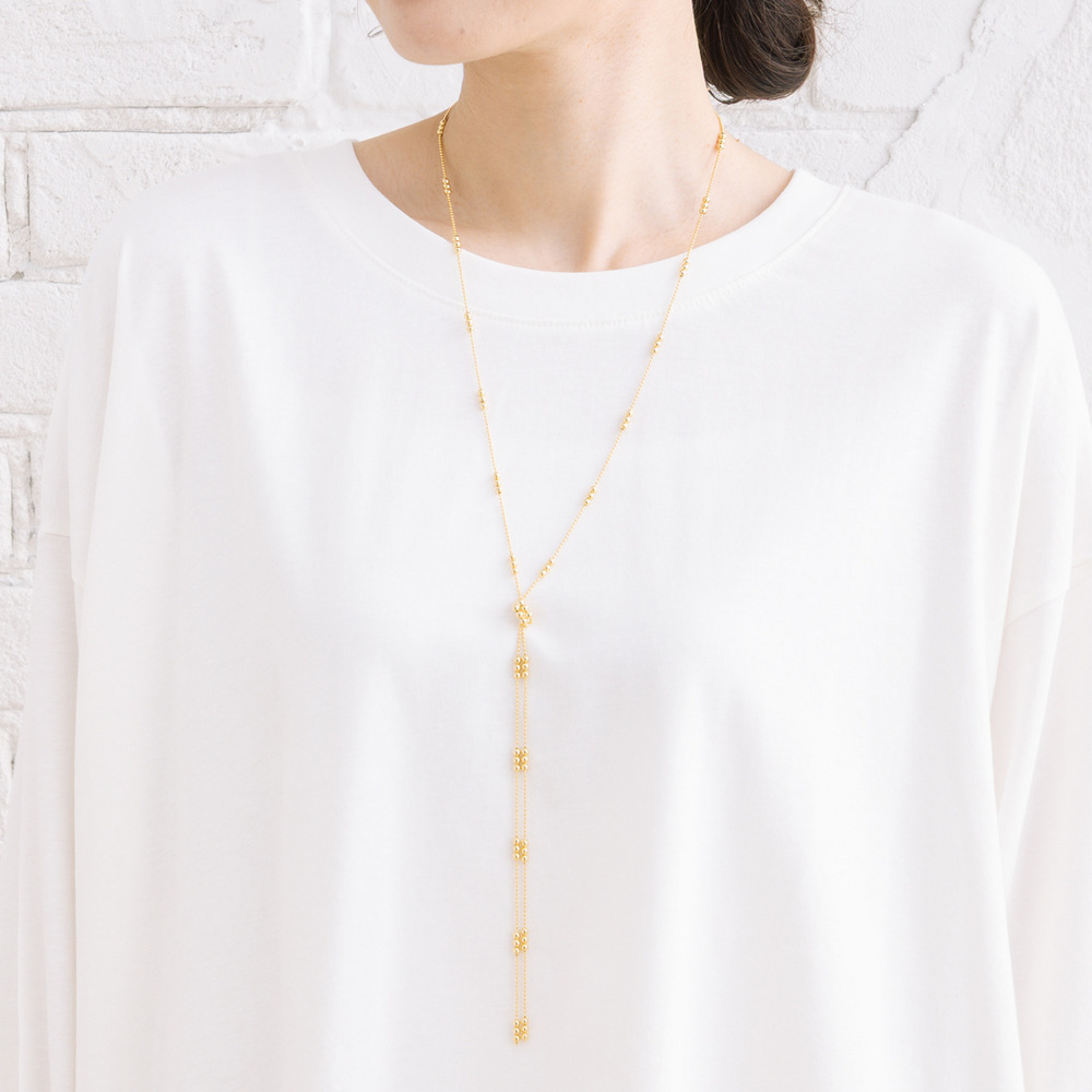 繊細なボールチェーンにノットデザインをあしらい、ほどよい存在感をプラス。