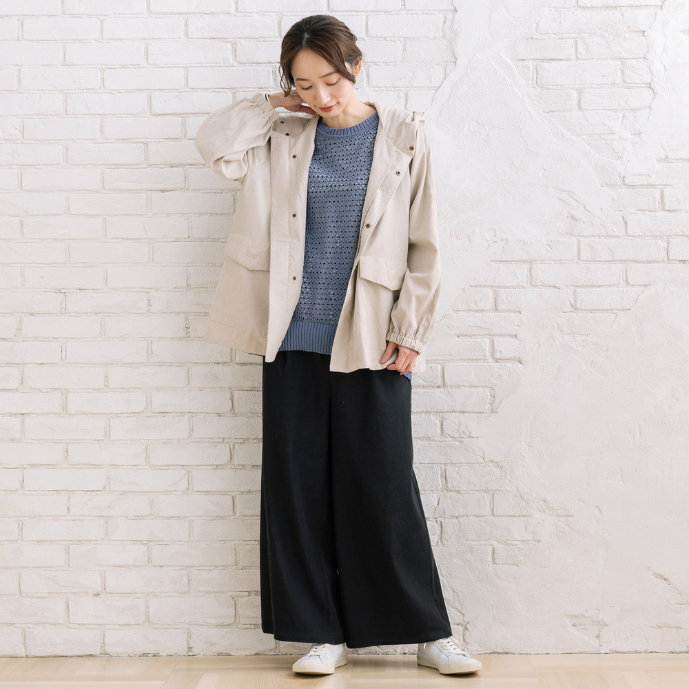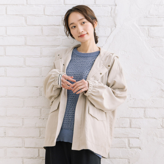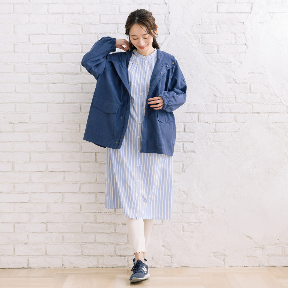 ワンピースやロングスカートに羽織って、女性らしいカジュアルスタイルに。