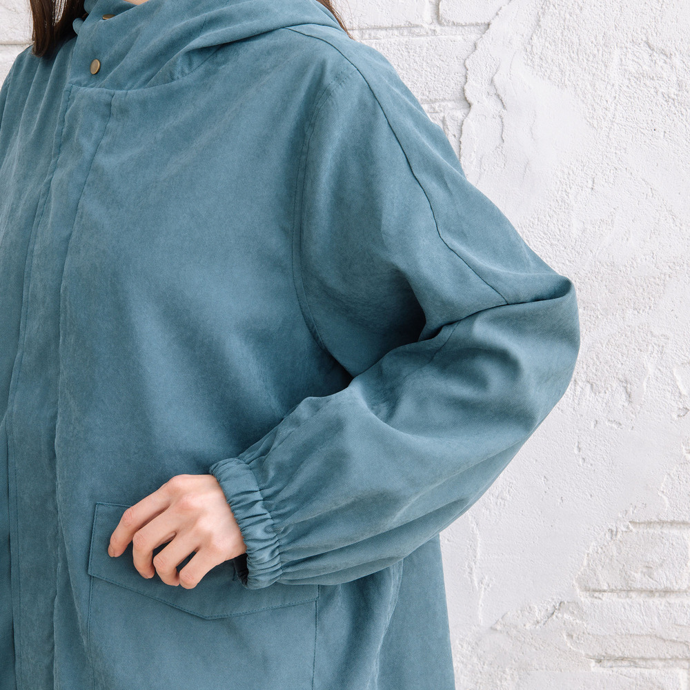 ツイル素材の落ち着いた風合いが、大人カジュアルに馴染むマウンテンパーカー。