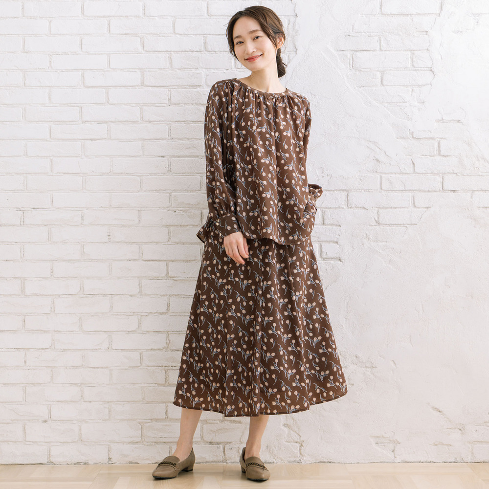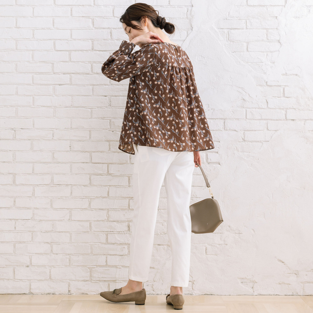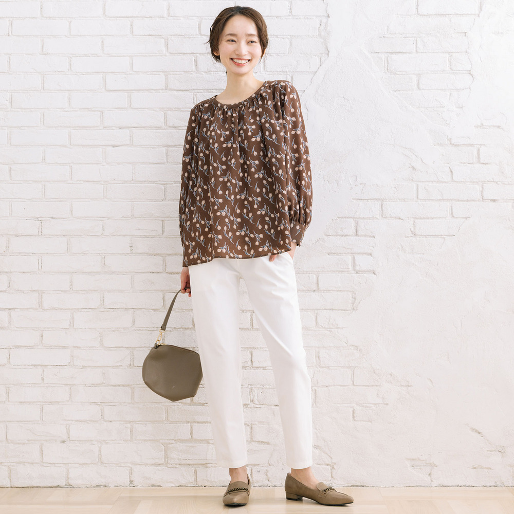 無地のパンツやスカートと合わせて、ブラウスを主役に。