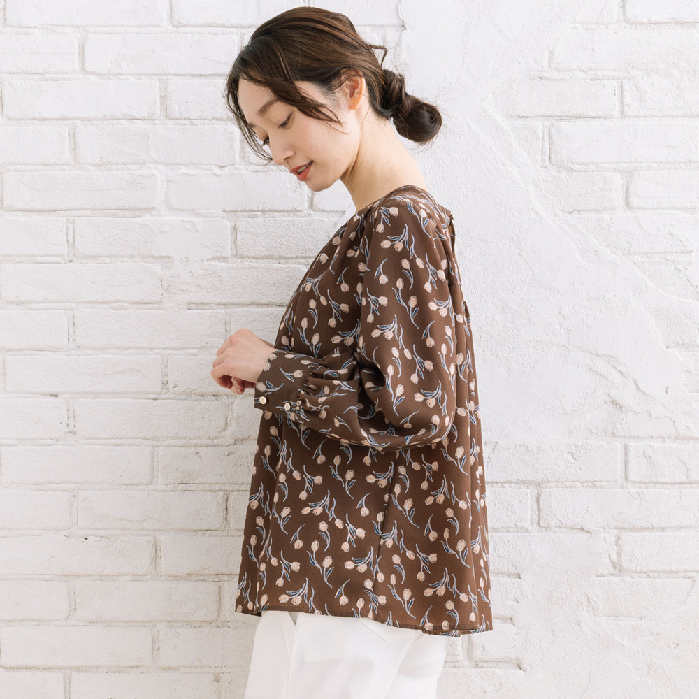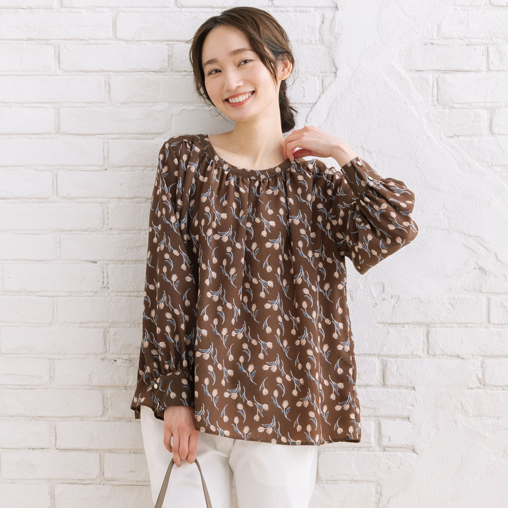 21号(6L~) パウダーサテンチューリッププリントブラウス