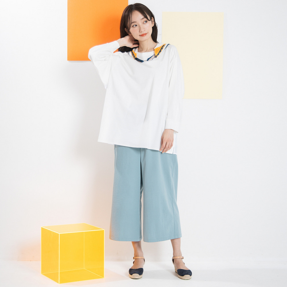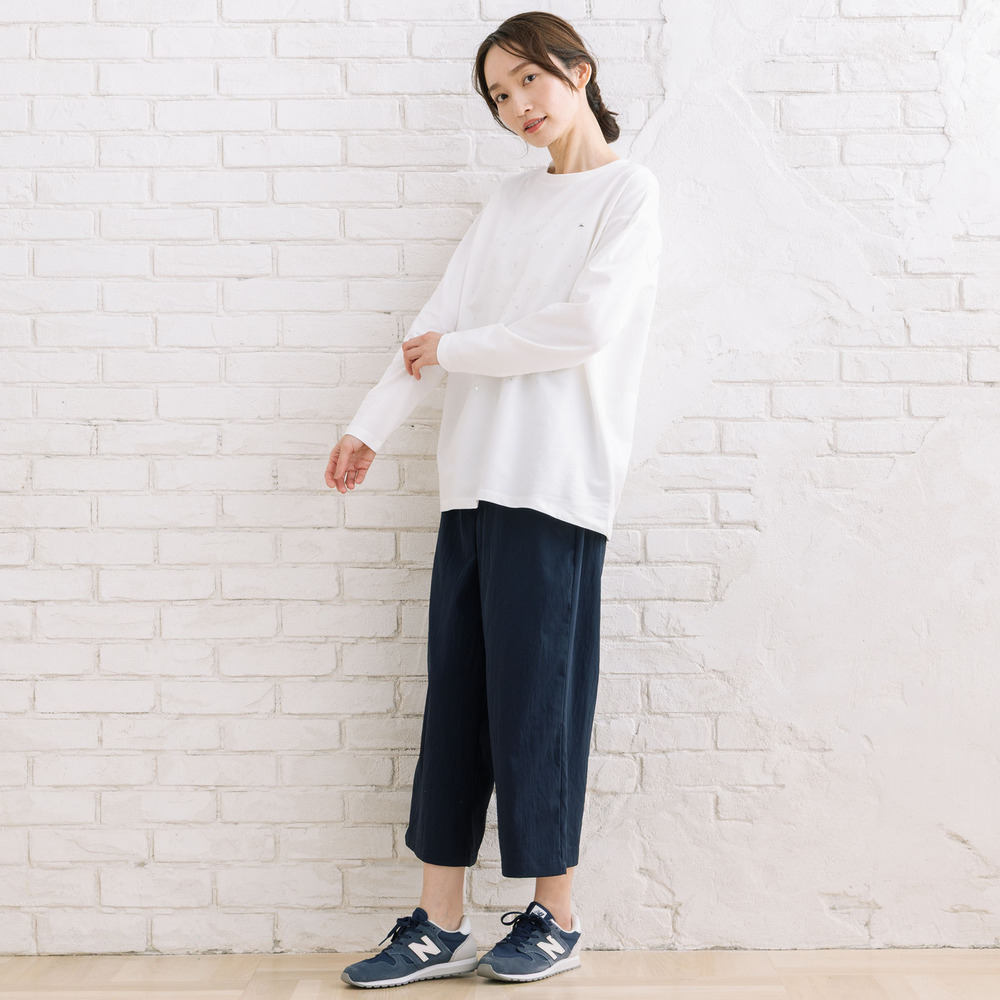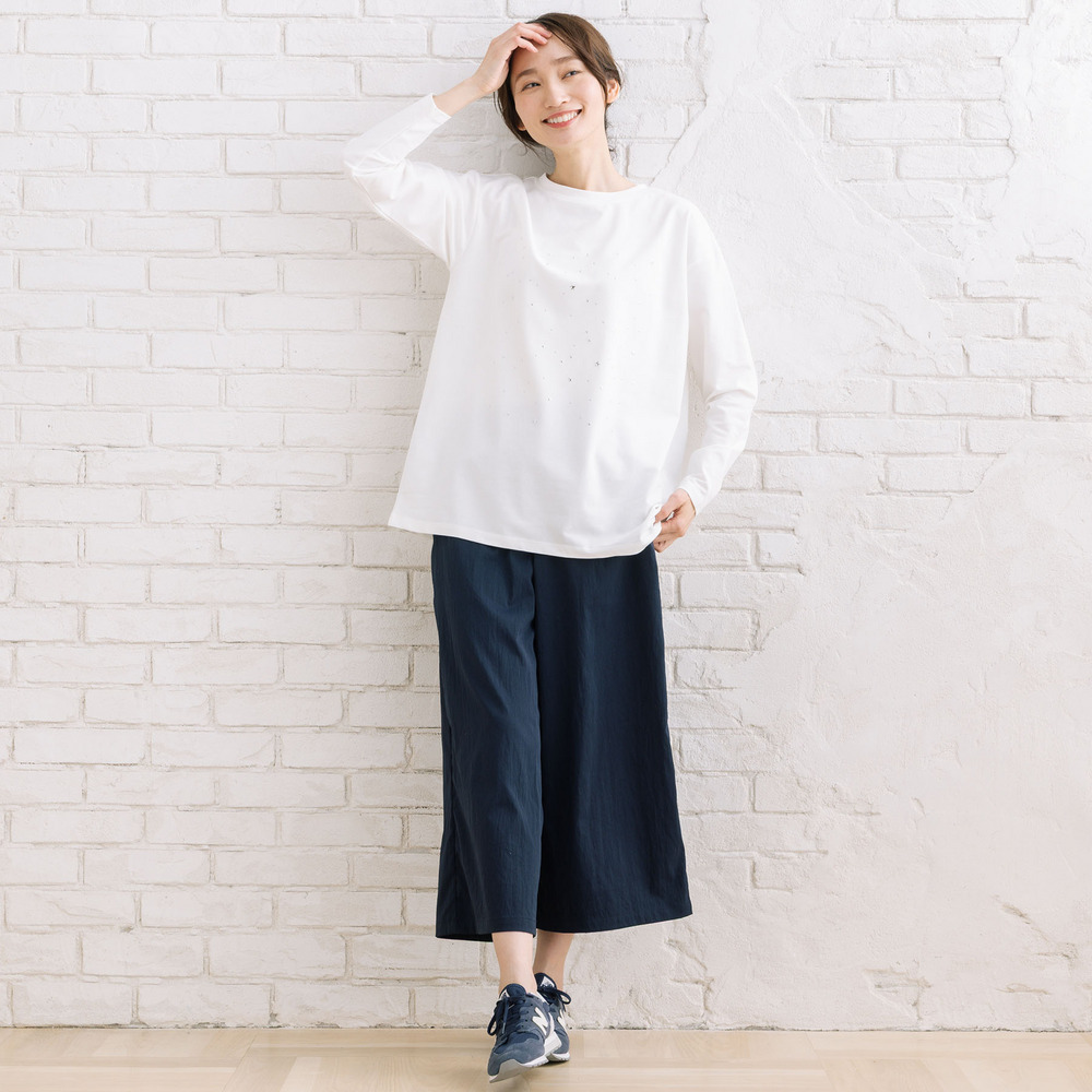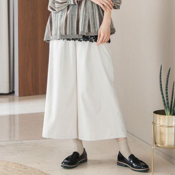 ほどよい落ち感とゆとりのあるガウチョシルエットで、リラックス感のある一本。