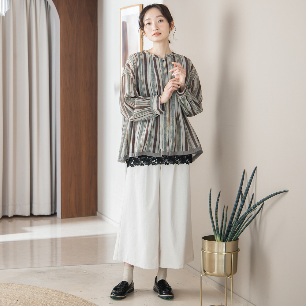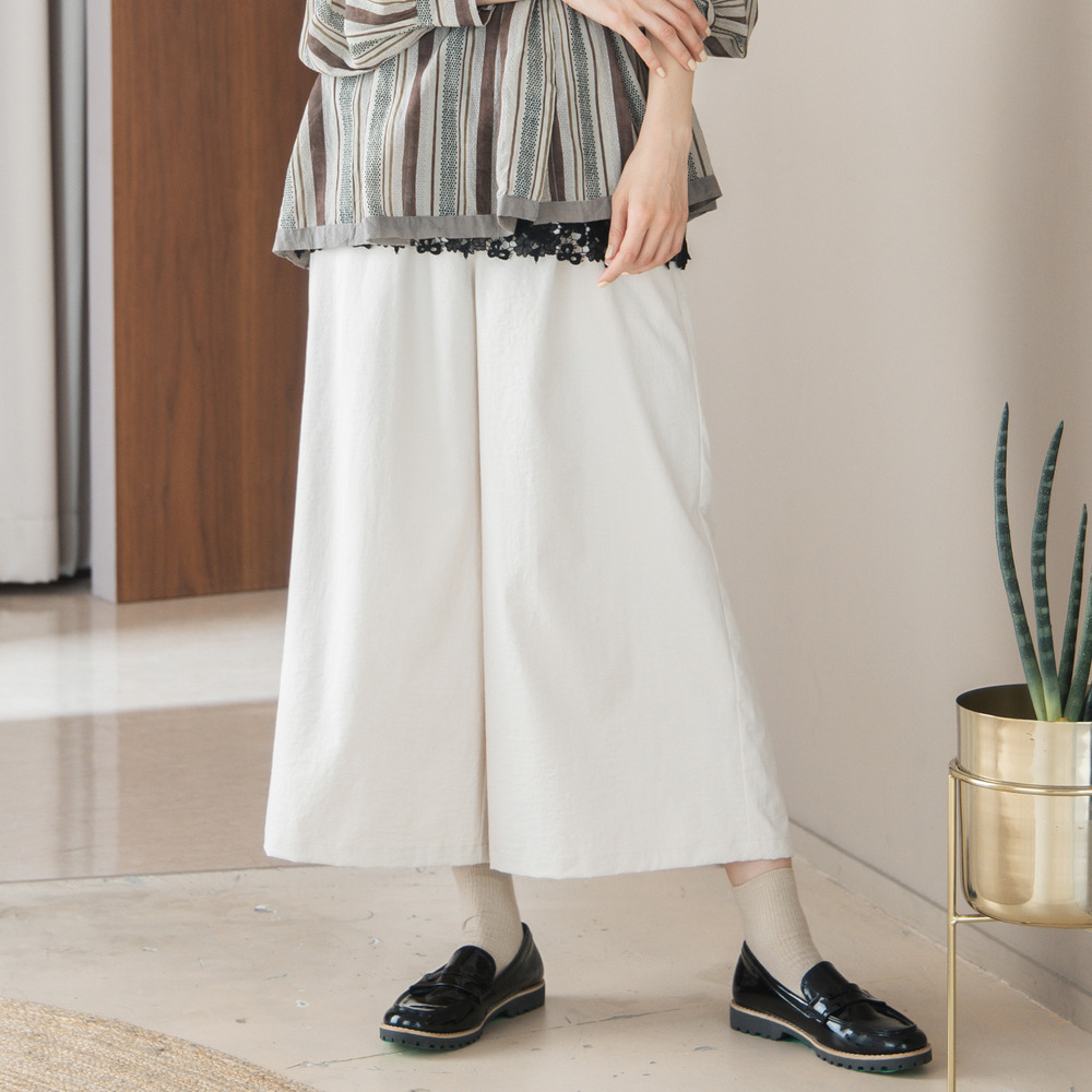 【軽やかに穿ける、ナチュラルストレッチガウチョパンツ】