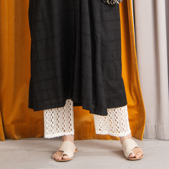 【足元に、さりげない華やぎを。クロシェレース切替レギパン】