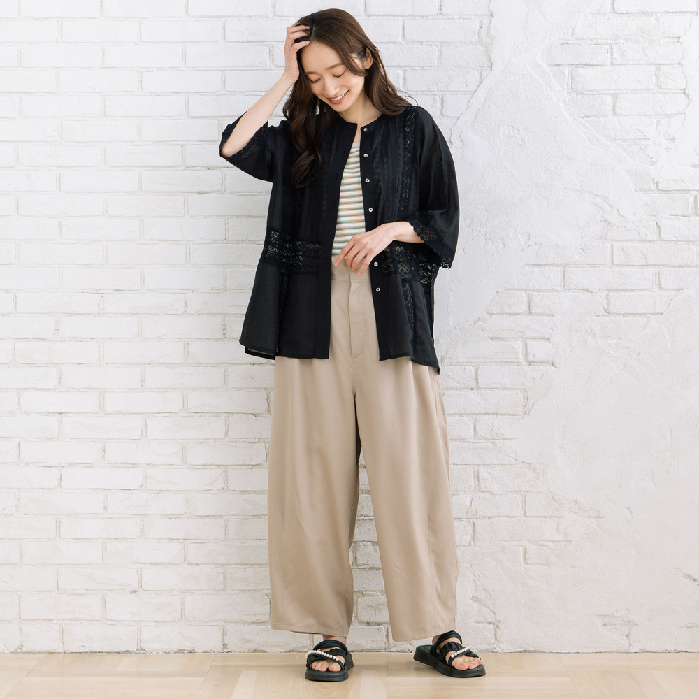 シャツやシアートップス、カーディガンのインナーとしてレイヤードに。