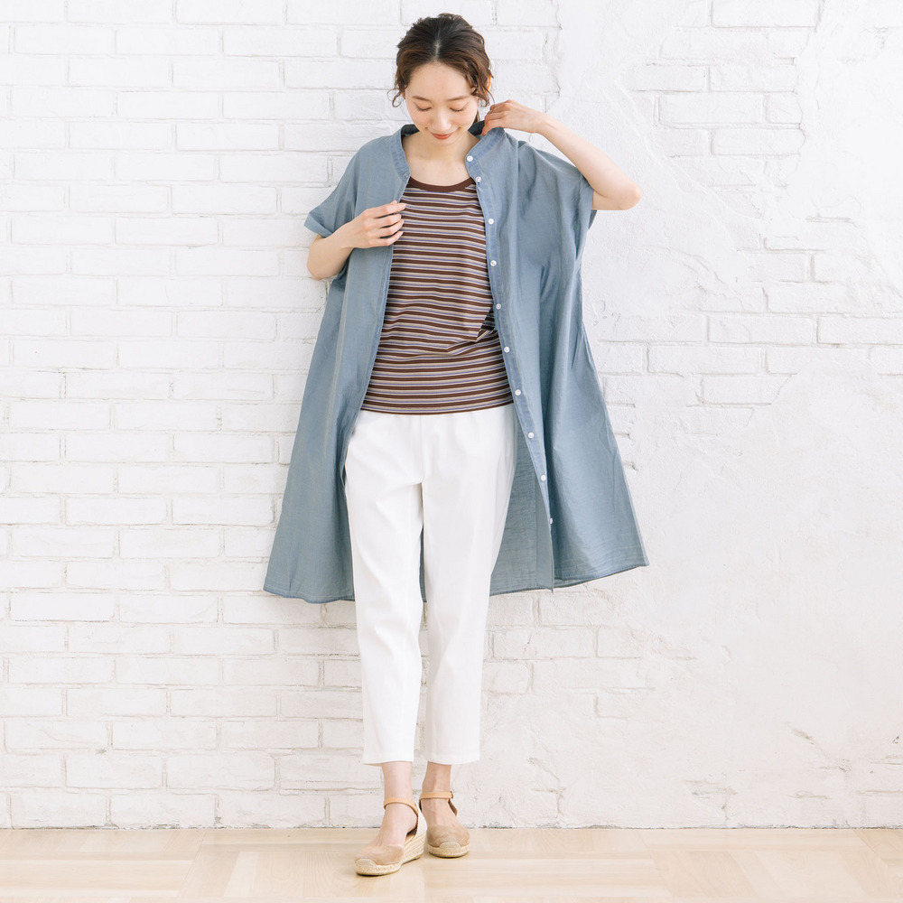 ・細ボーダーがコーデのアクセントに