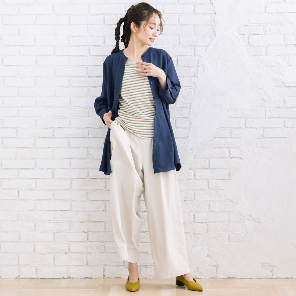 テレコ素材ならではの程よいフィット感で、インナー使いにも一枚着にも活躍します。