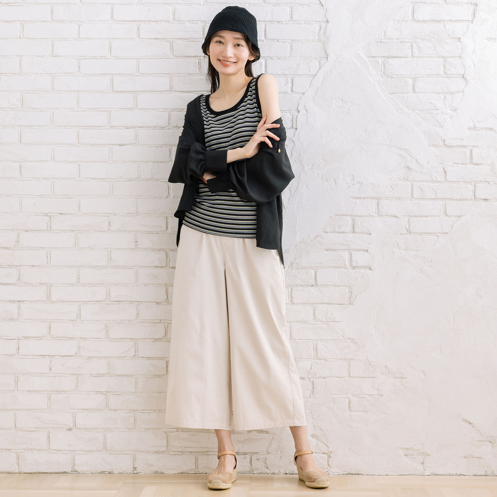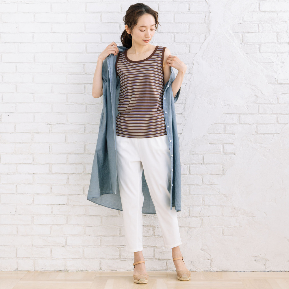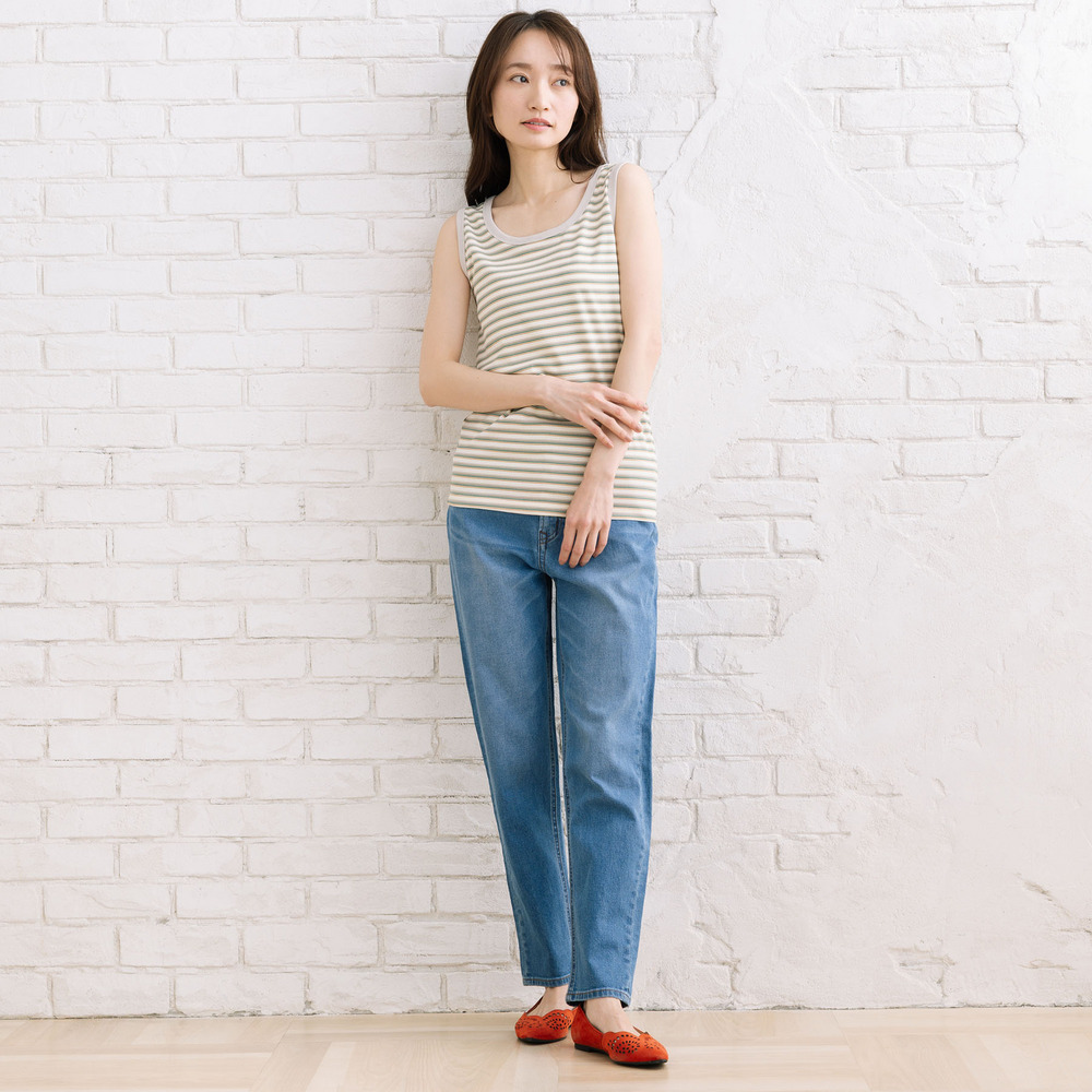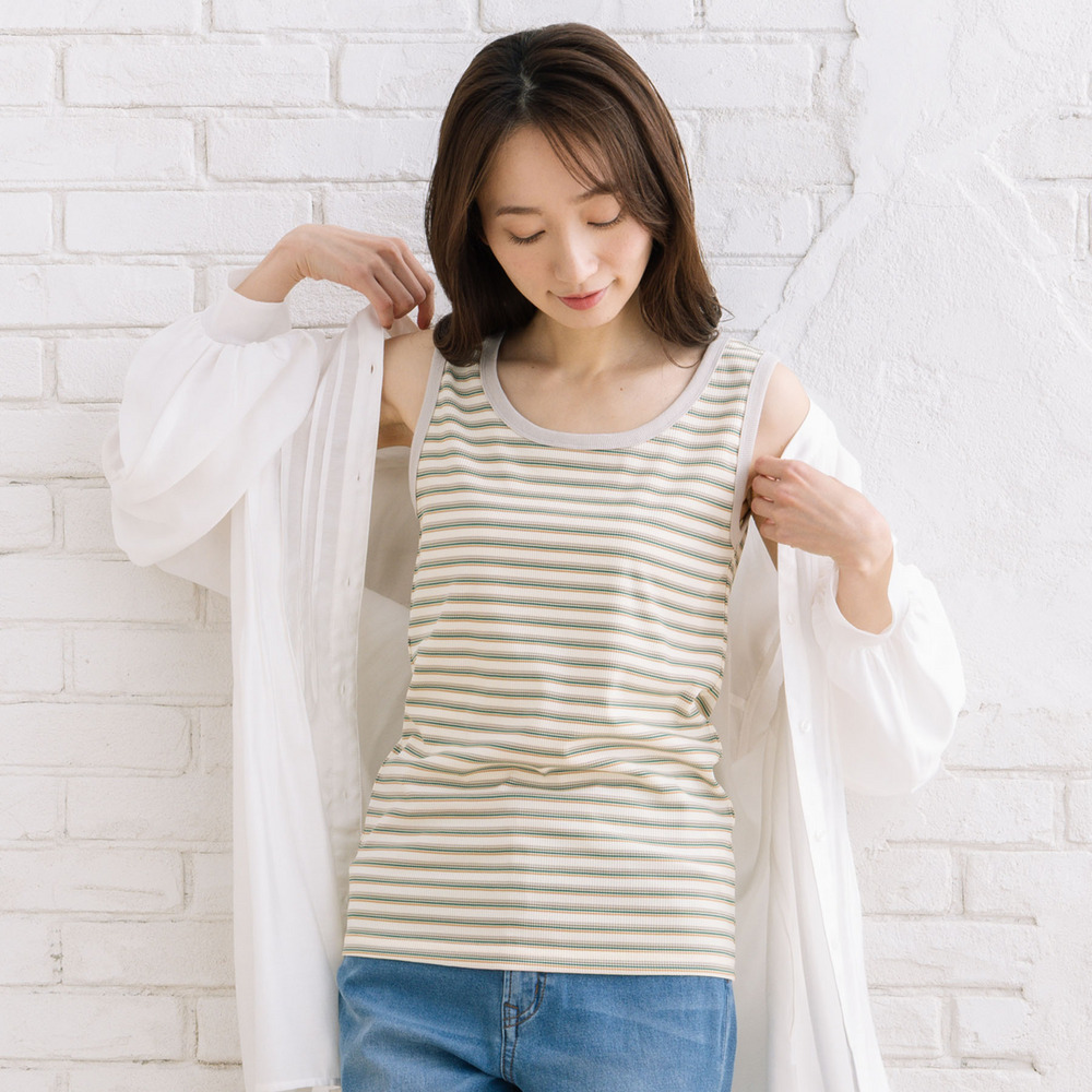 【着回し力の高い定番アイテム、ボーダーテレコタンクトップ】