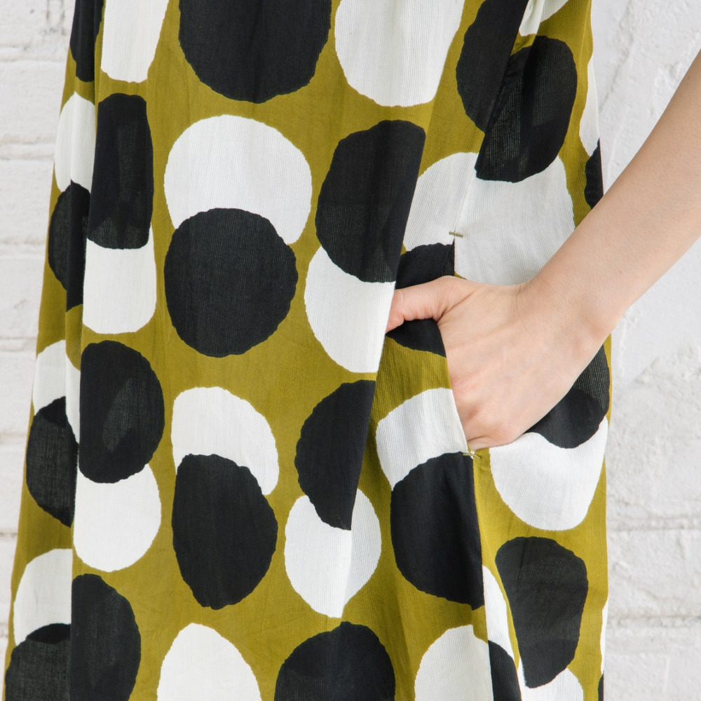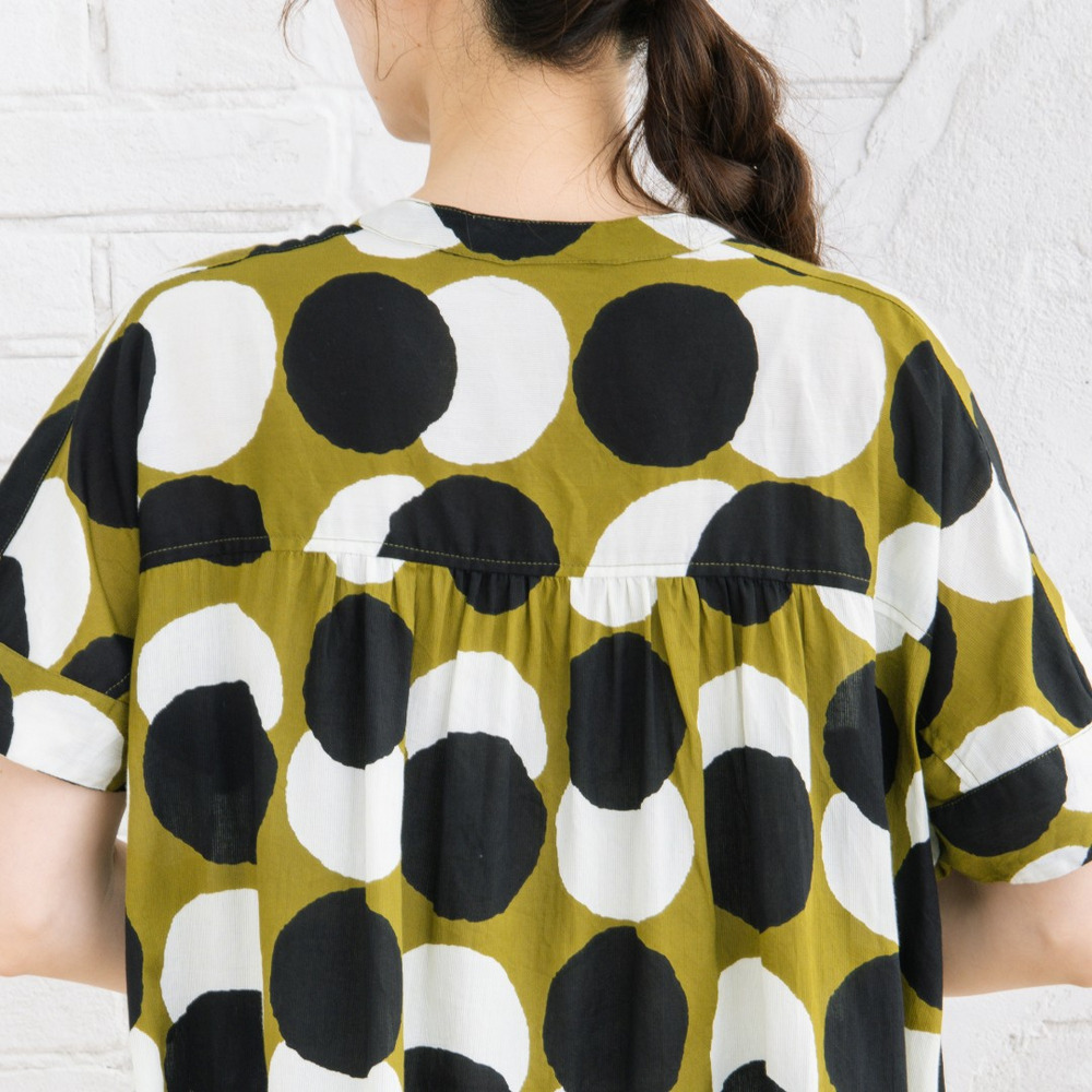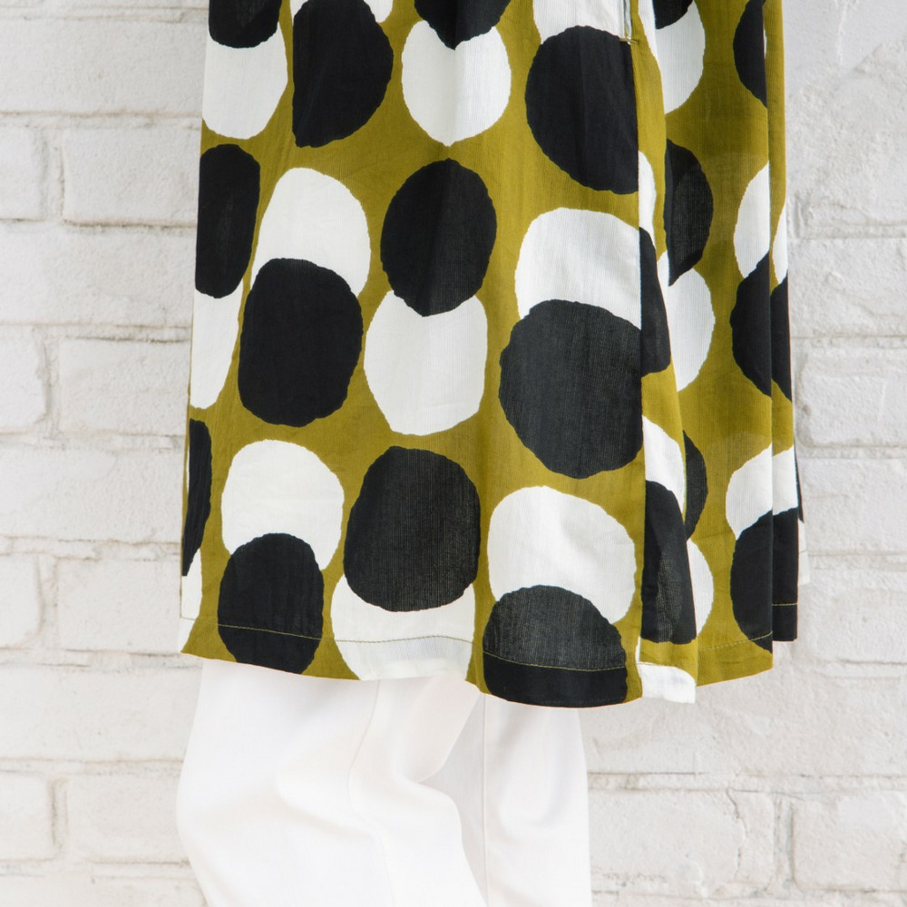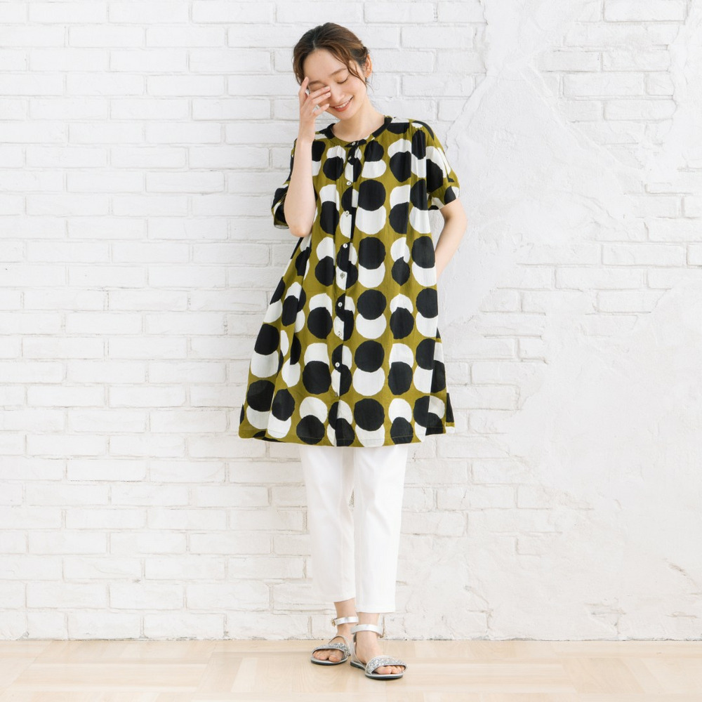 印象的なサークルプリントが目を引く、華やかなチュニック。