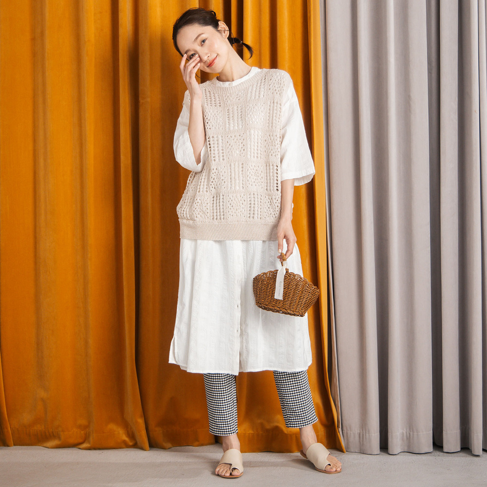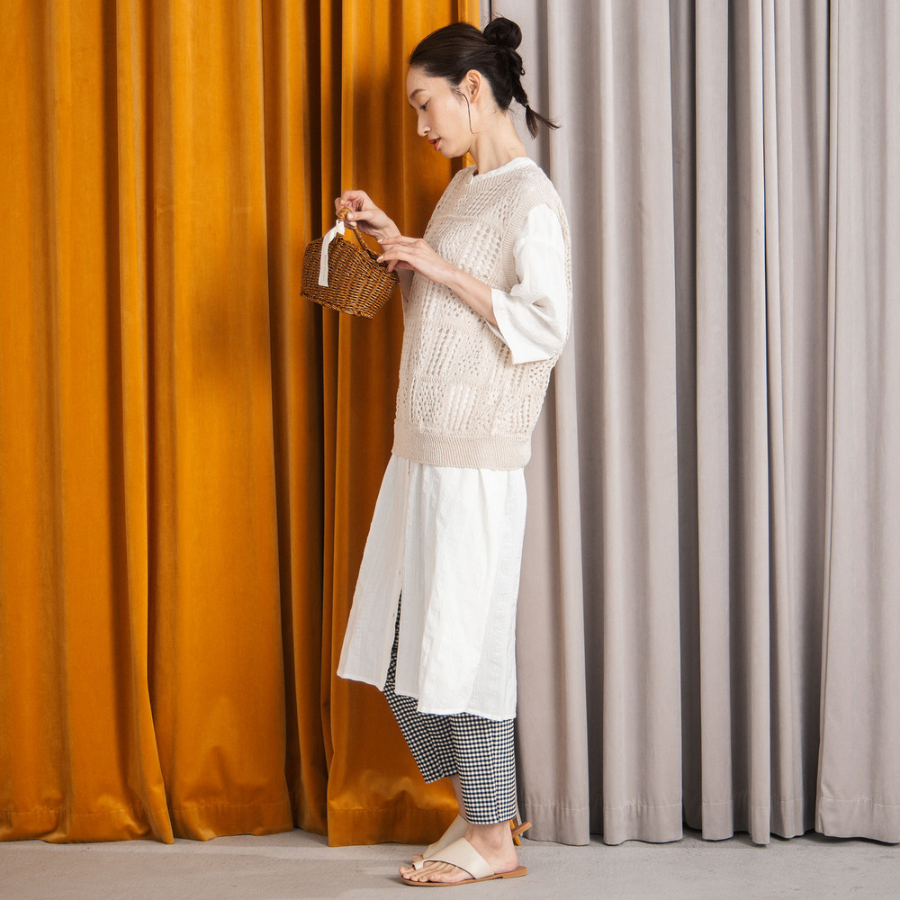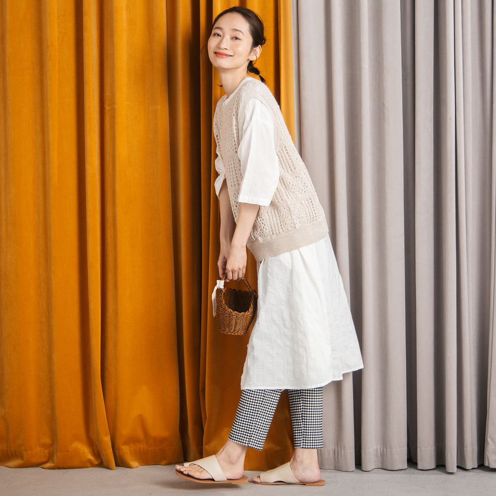 シャツやカットソー、ワンピースに重ねてレイヤードを楽しむのがおすすめです。