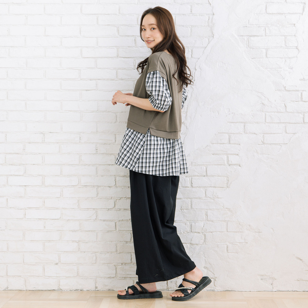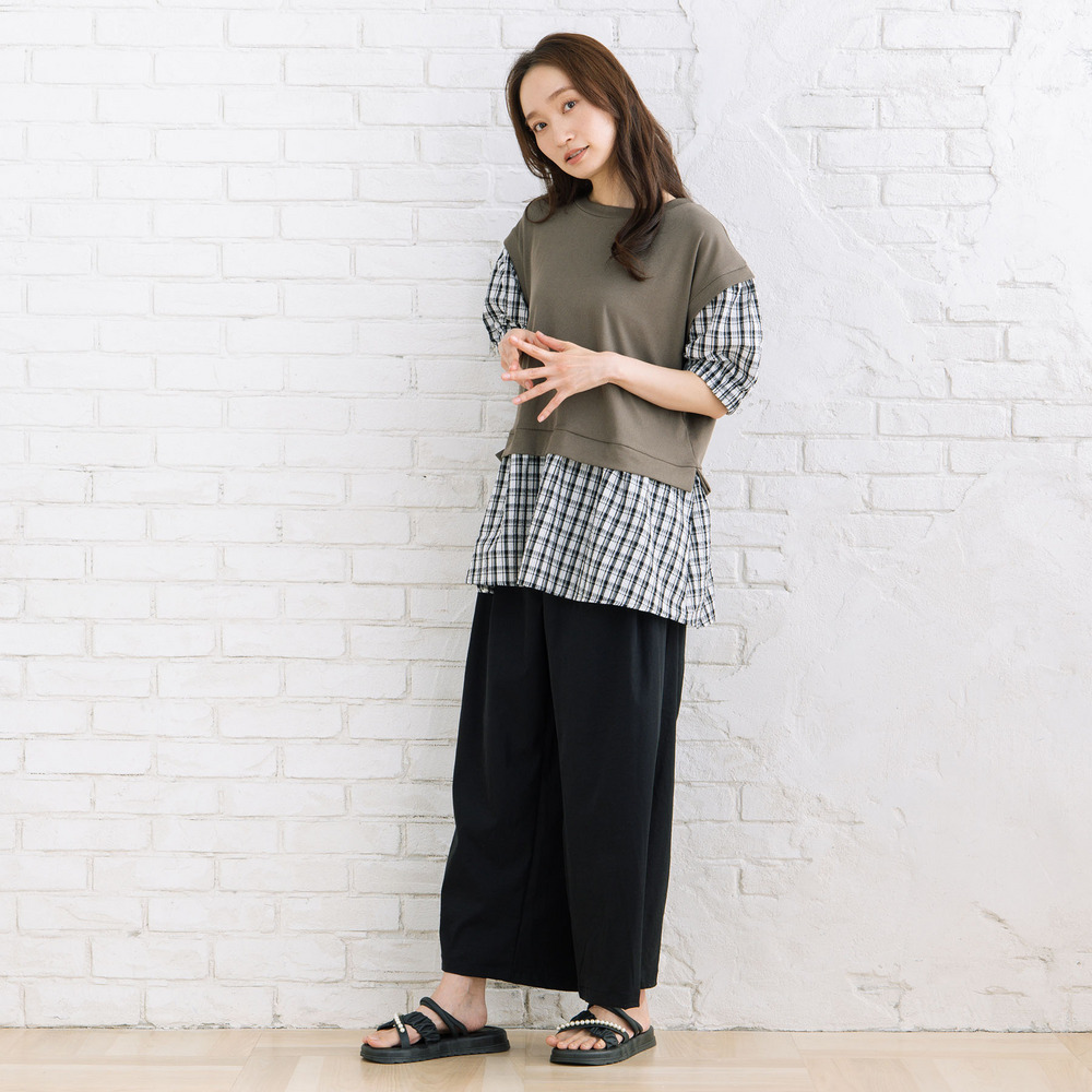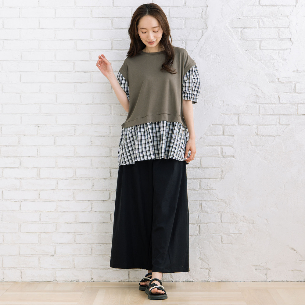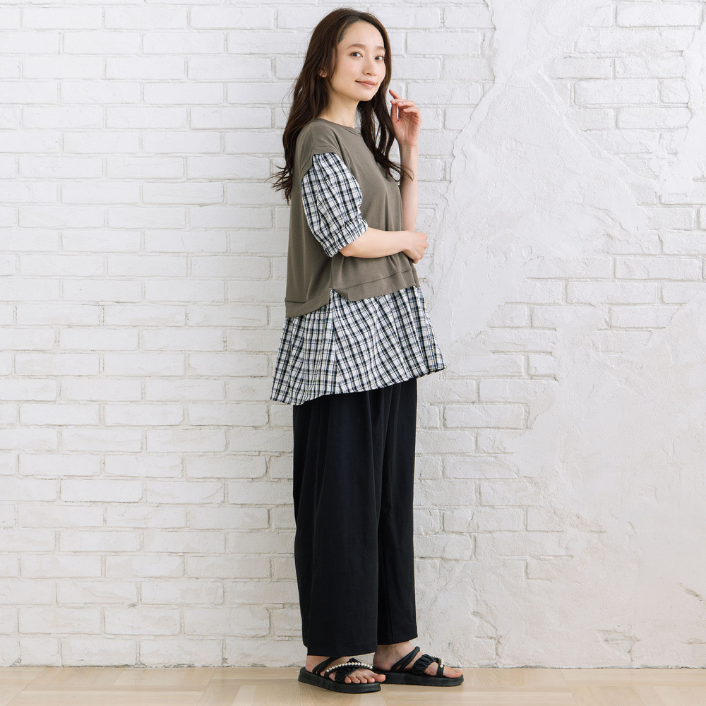 ・重ね着風のチェック切替デザイン