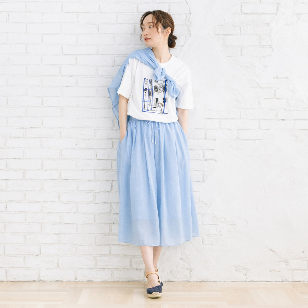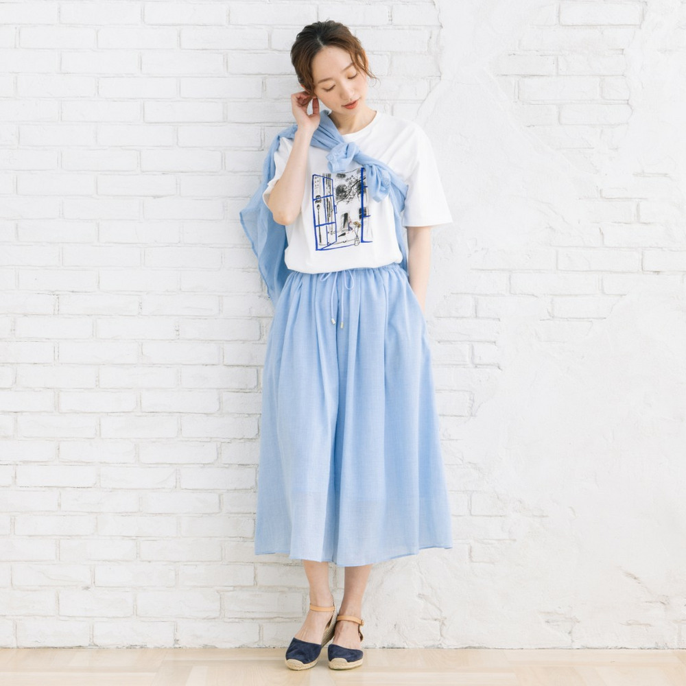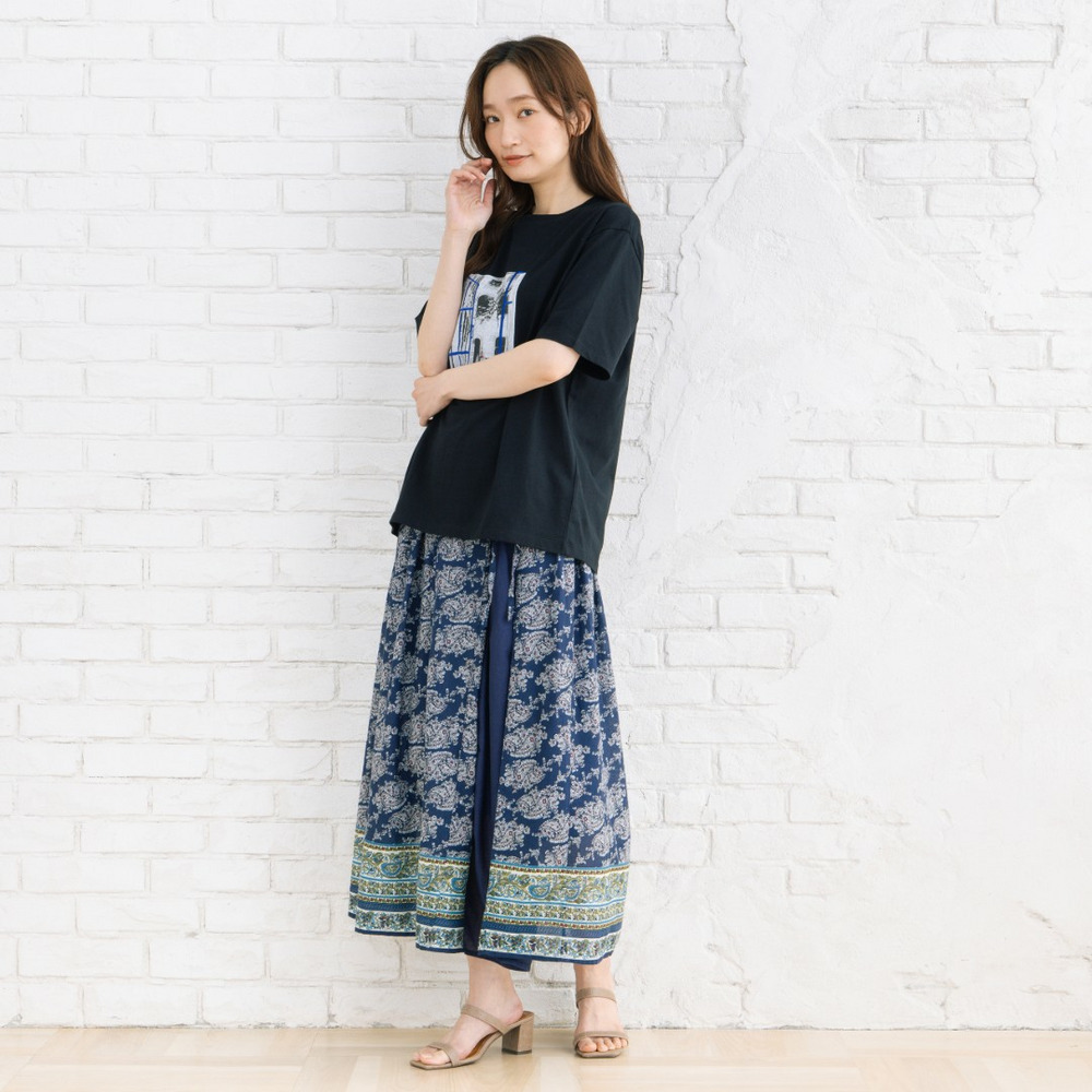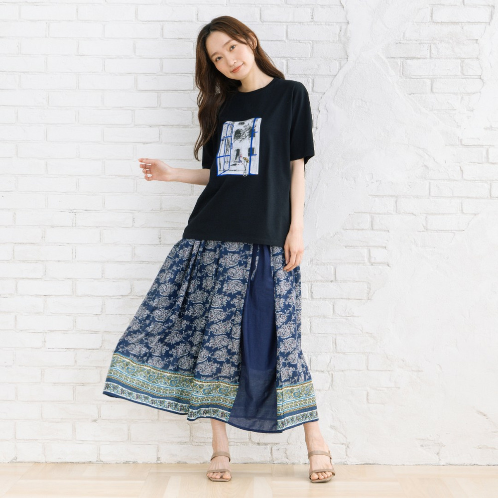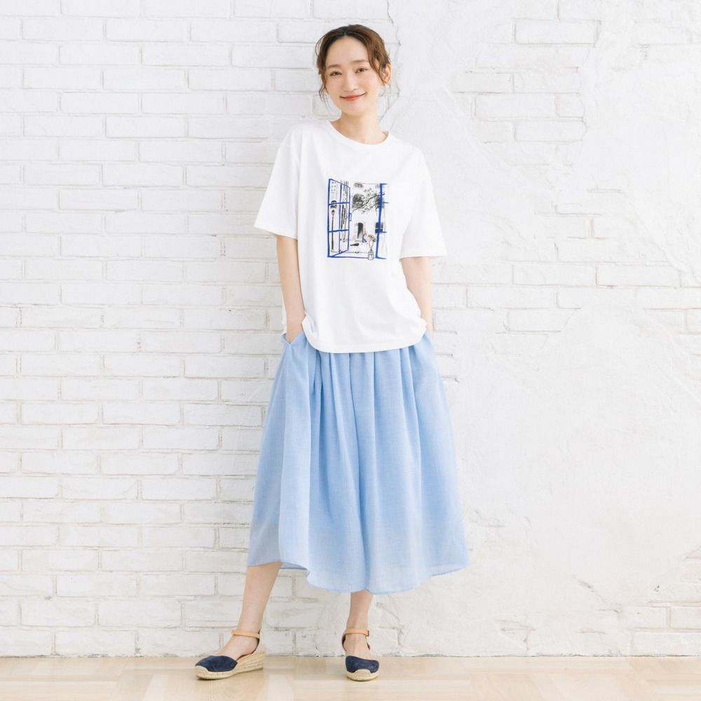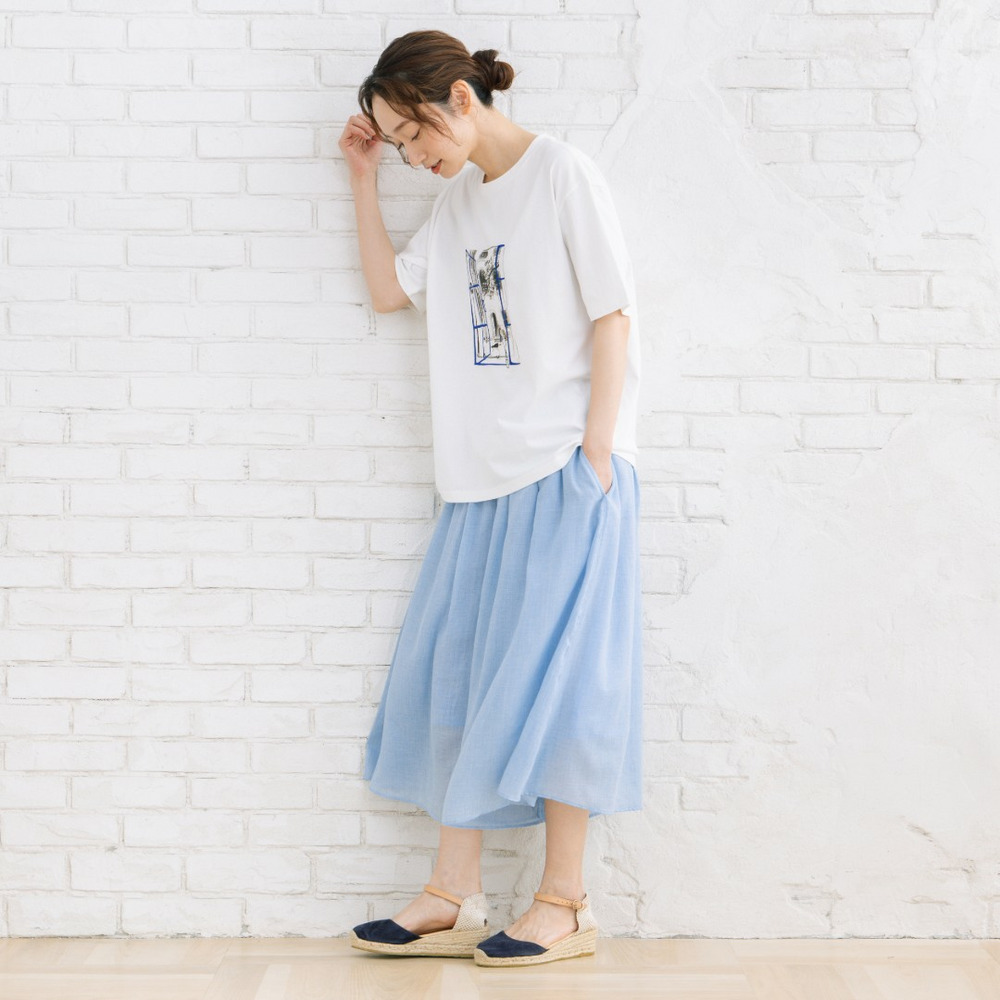 無地のパンツやスカートと合わせて、アートデザインを主役にしたスタイリングがおすすめ。