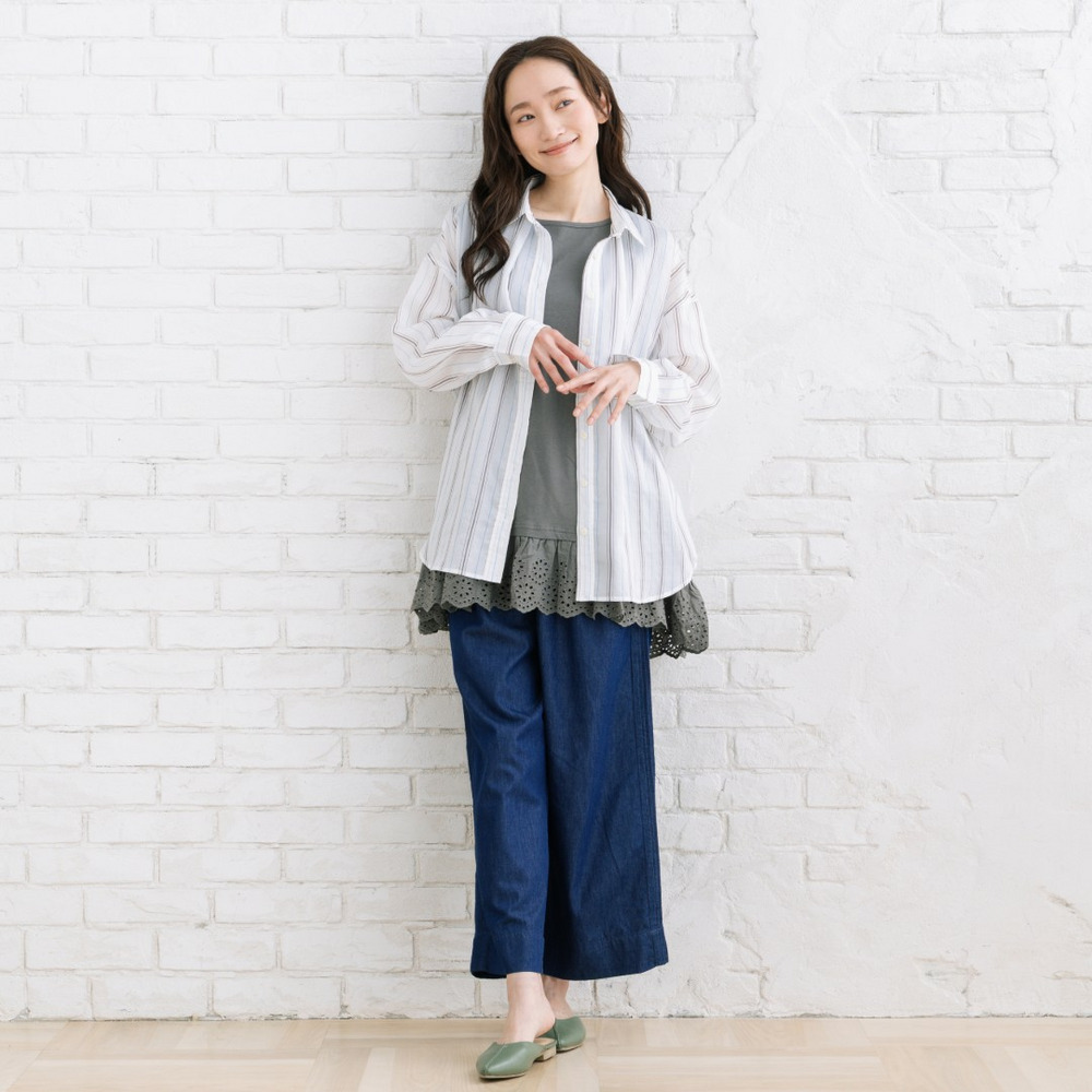 軽やかな素材感で、季節の変わり目や冷房対策にも活躍する一枚です。