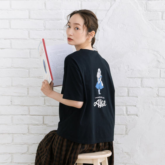 背中にあしらったアリスのイラストプリントが目を引くデザインTシャツ。
