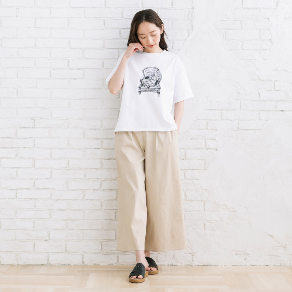 無地のパンツやスカートと合わせて、プリントを主役にしたスタイリングがおすすめ。