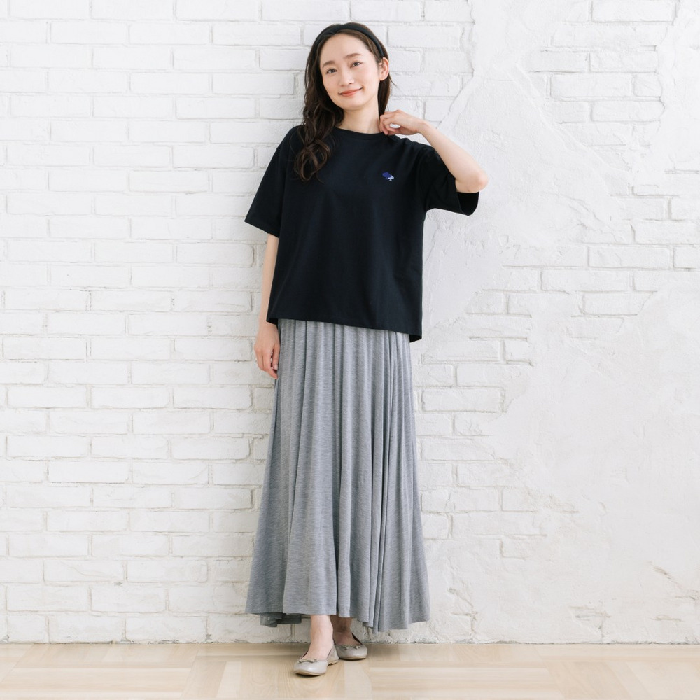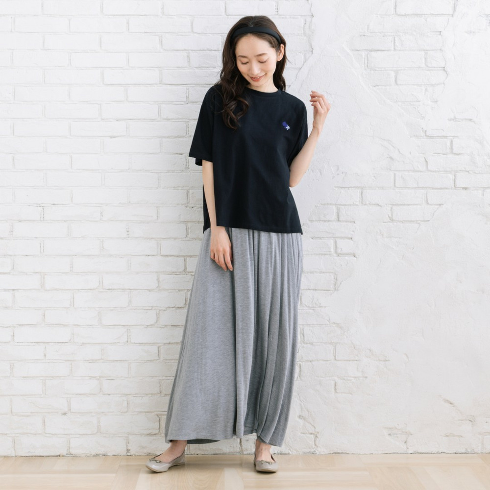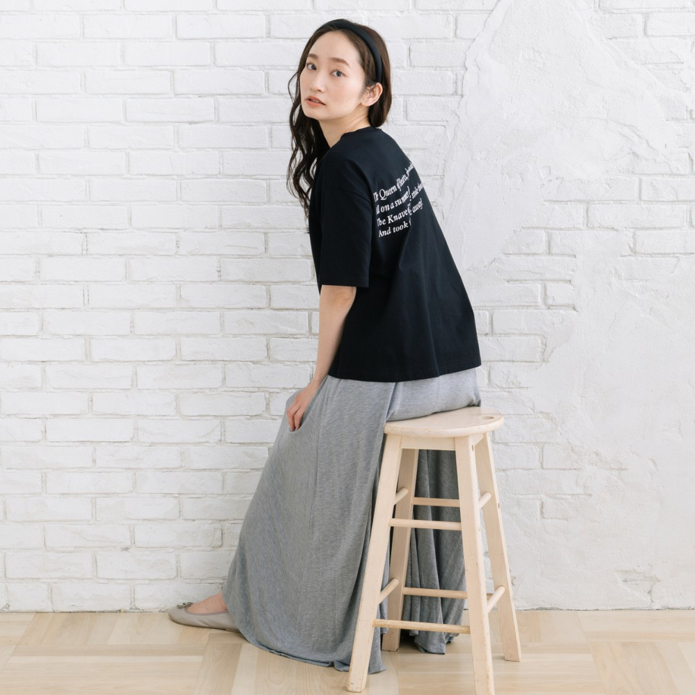 ゆったりとしたシルエットで体のラインを拾いにくく、リラックス感のある着心地も魅力です。