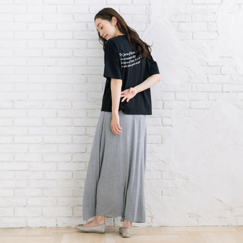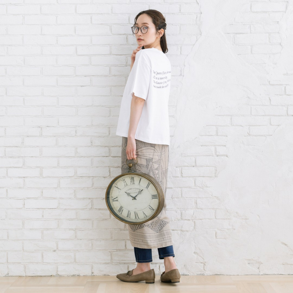 シンプルなボトムと合わせて、バックプリントを主役にした着こなしがおすすめ。