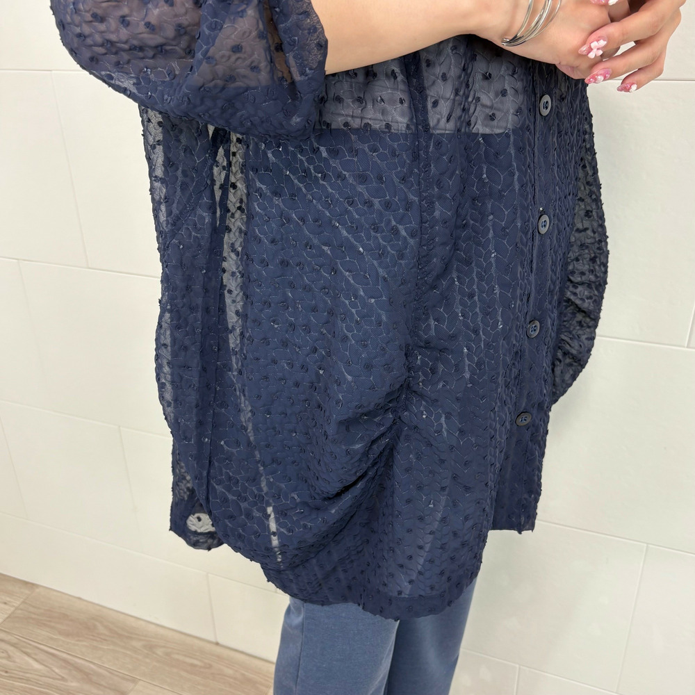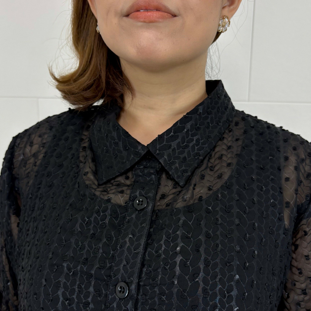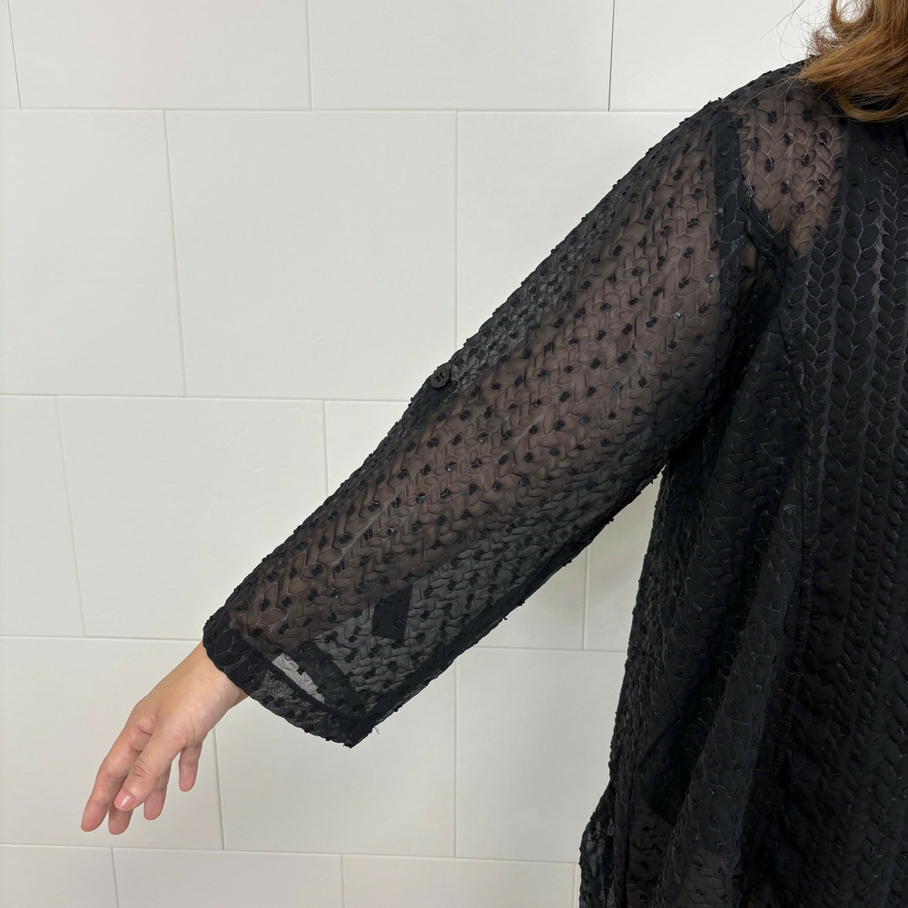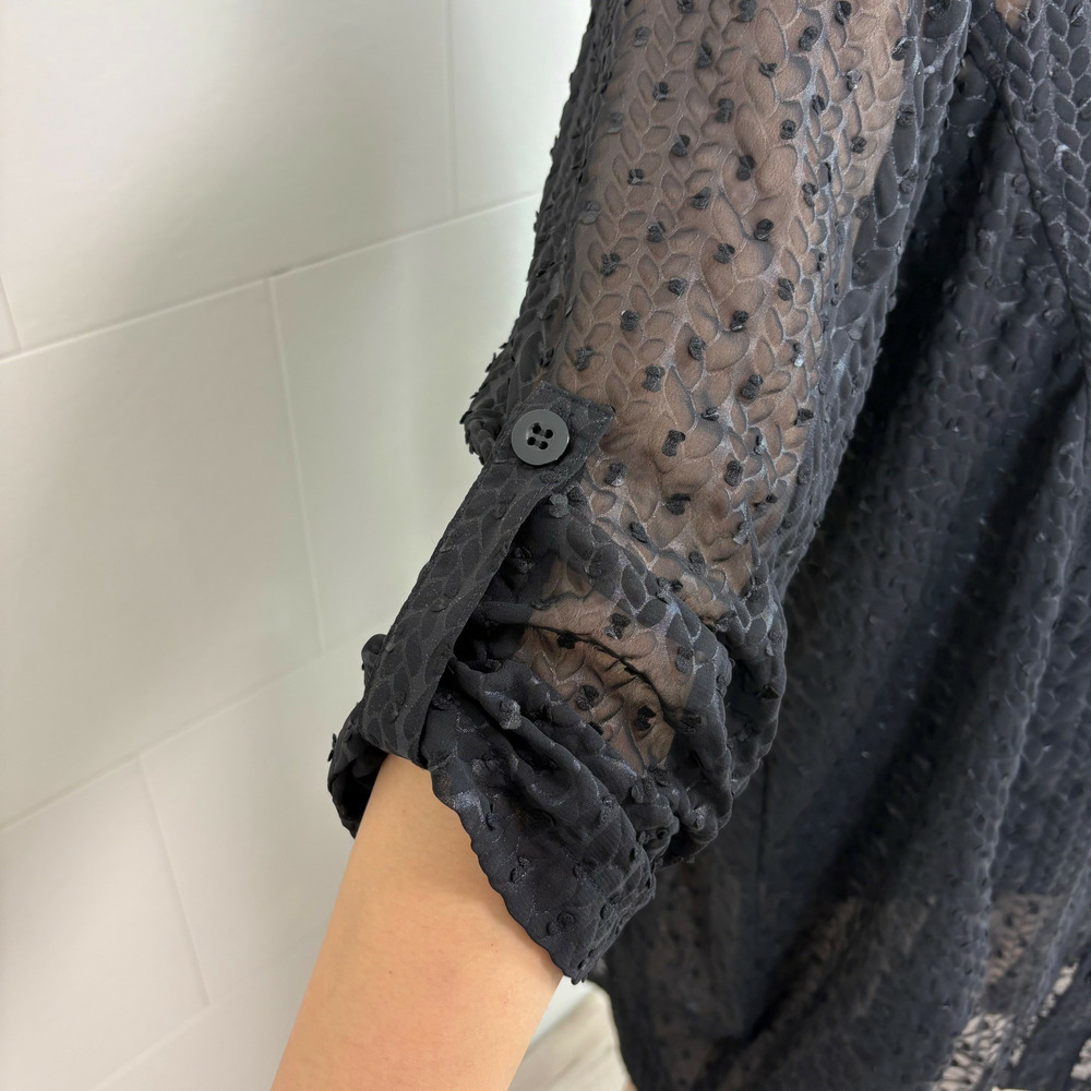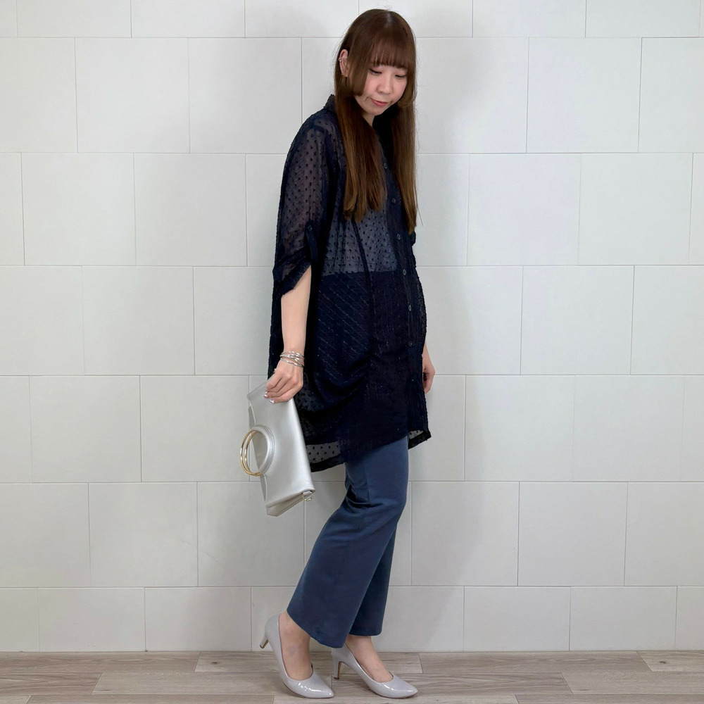 程よい透け感が大人の甘さをプラスし、抜け感と品のよさを兼ね備えた大きいサイズ対応シアーシャツチュニック。