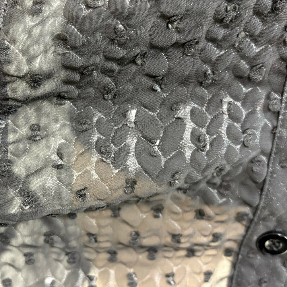 裏地なし、前ボタン仕様、袖ロールアップ可能。