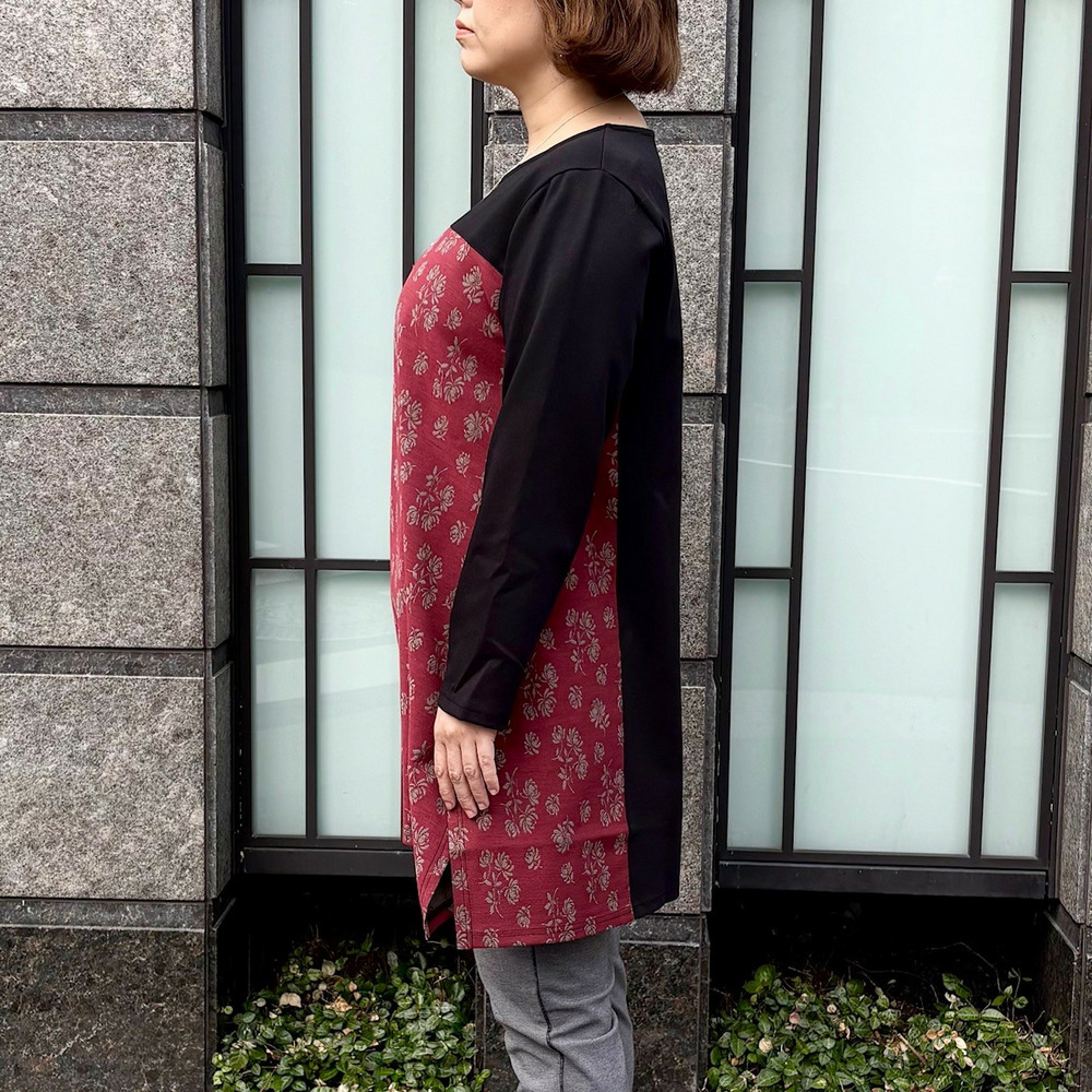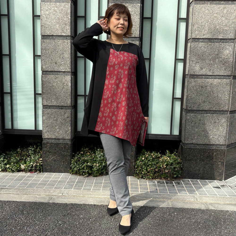 [3L-9L][日本製]アドニスポンチ×イタリア製タフタ花柄ジャガード切替変形デザインチュニック