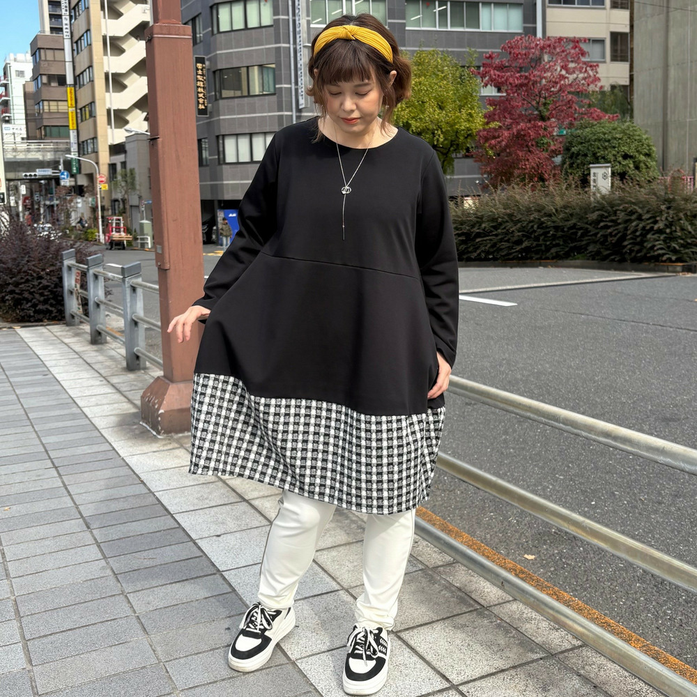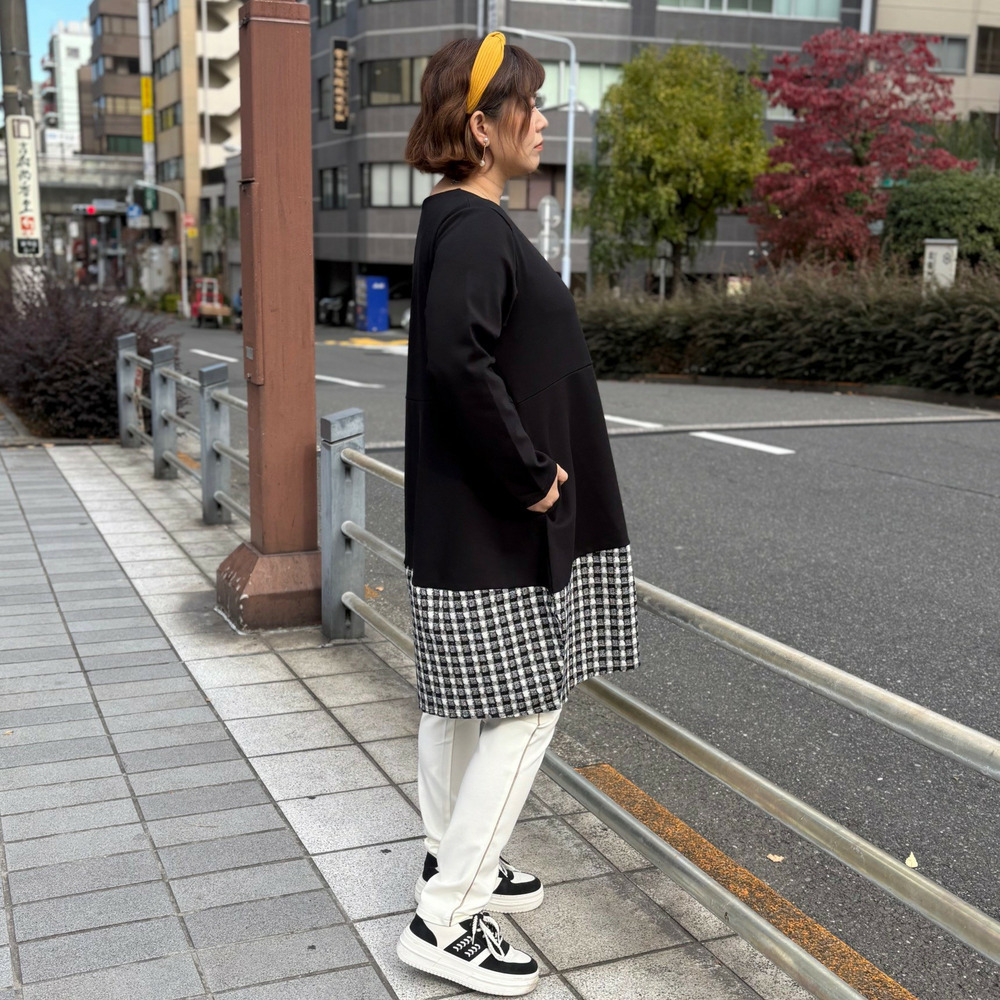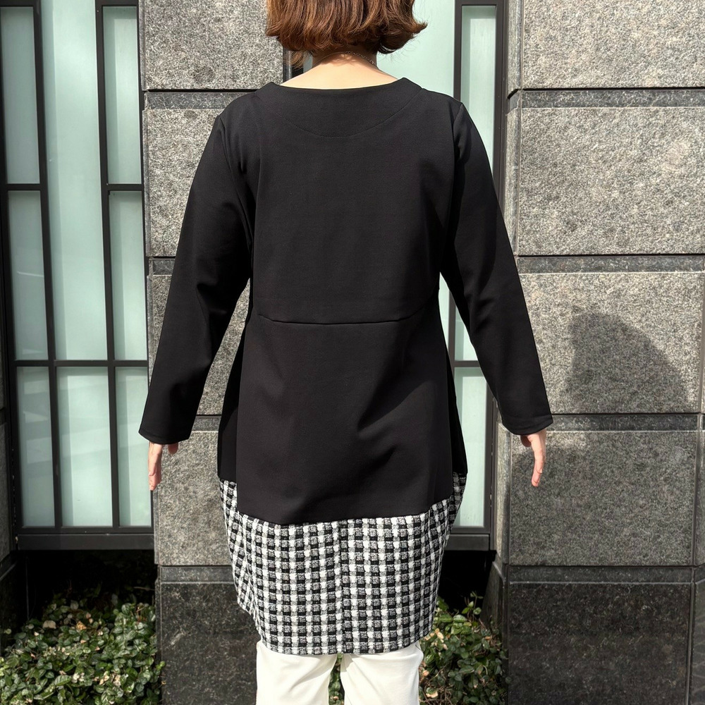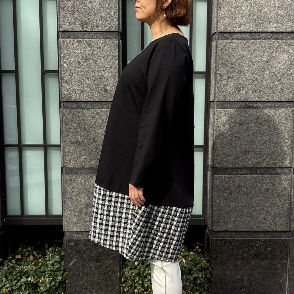 [3L-7L][日本製]アドニスポンチ×イタリア製タフタモノトーンチェックジャガード切替コクーンチュニック