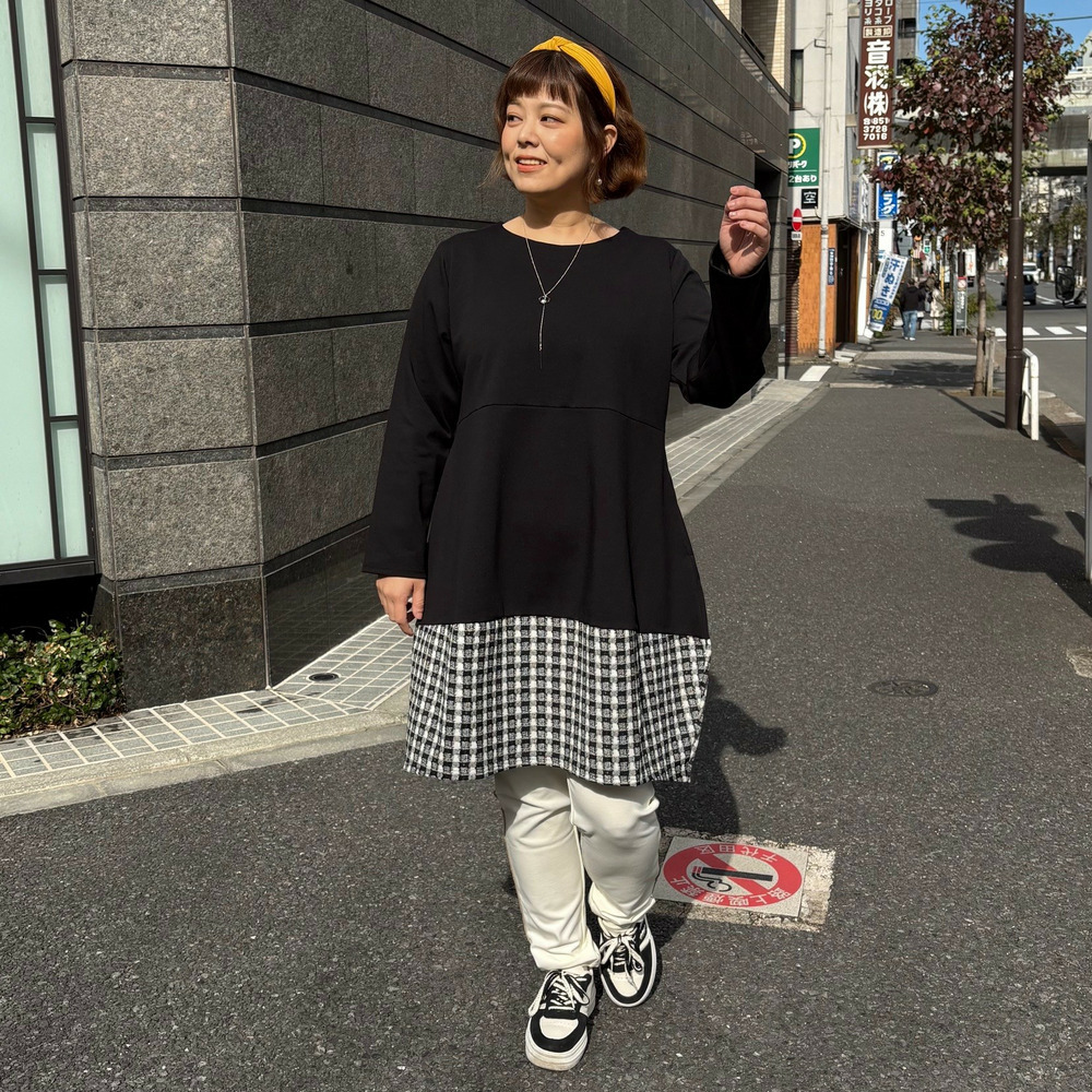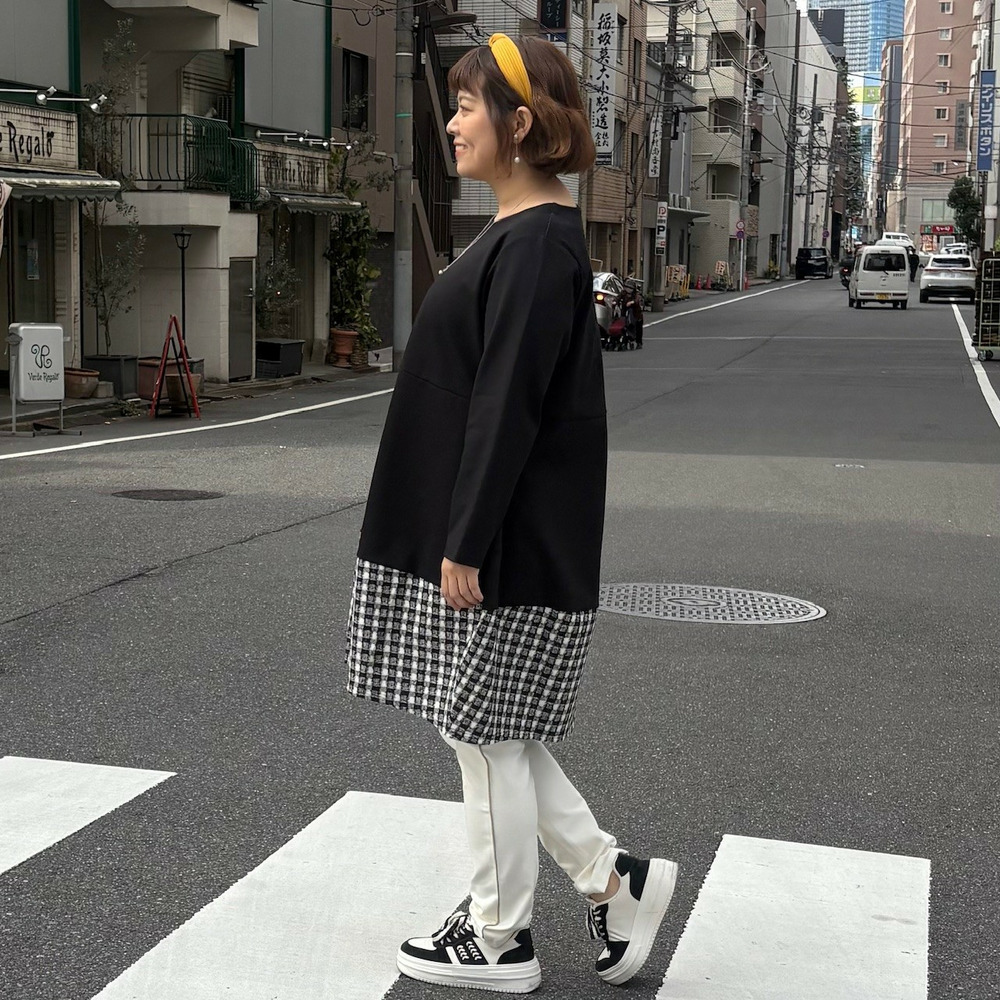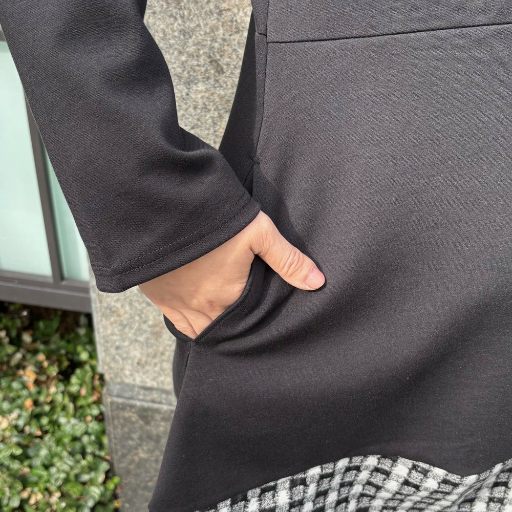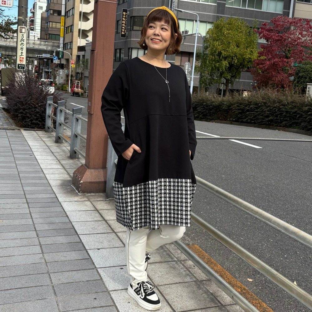 [3L-7L][日本製]アドニスポンチ×イタリア製タフタモノトーンチェックジャガード切替コクーンチュニック