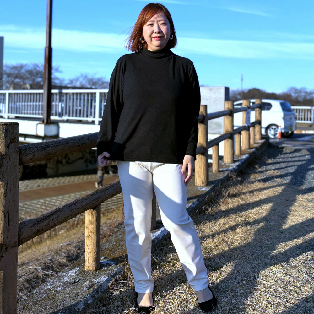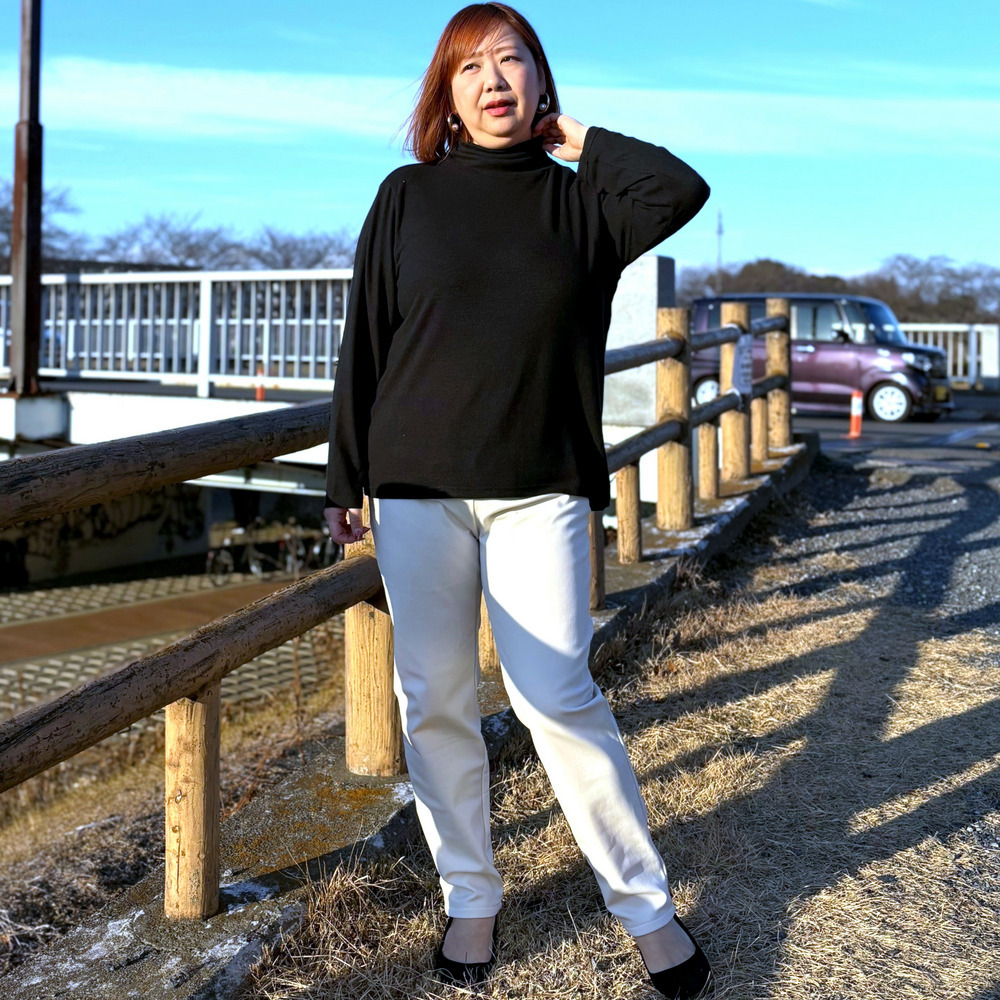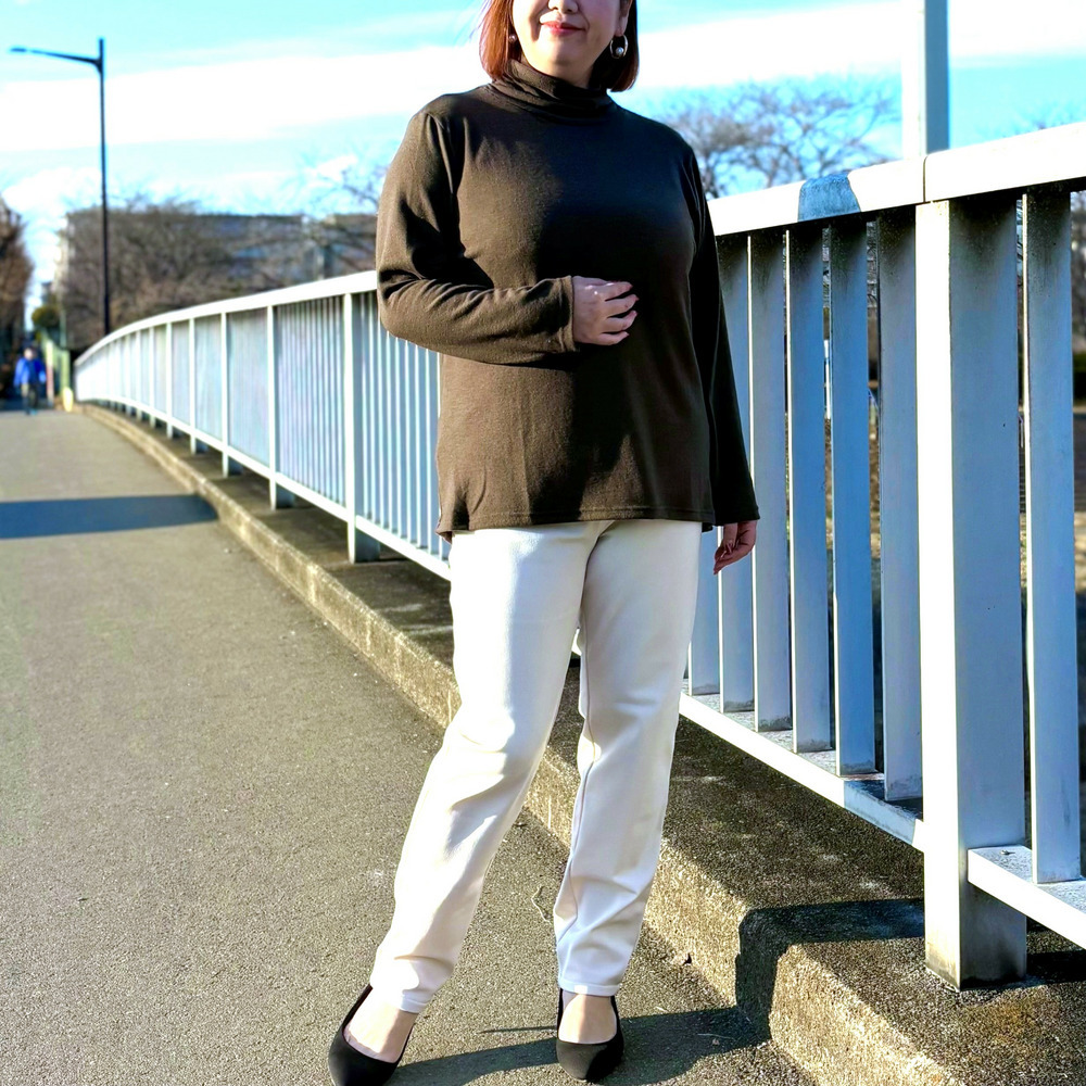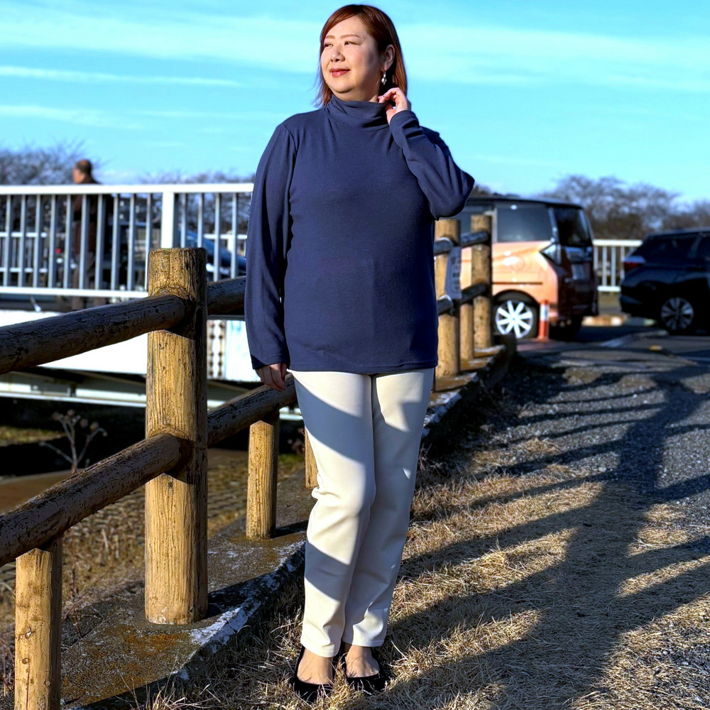 サイドゴム仕様のタートルネック