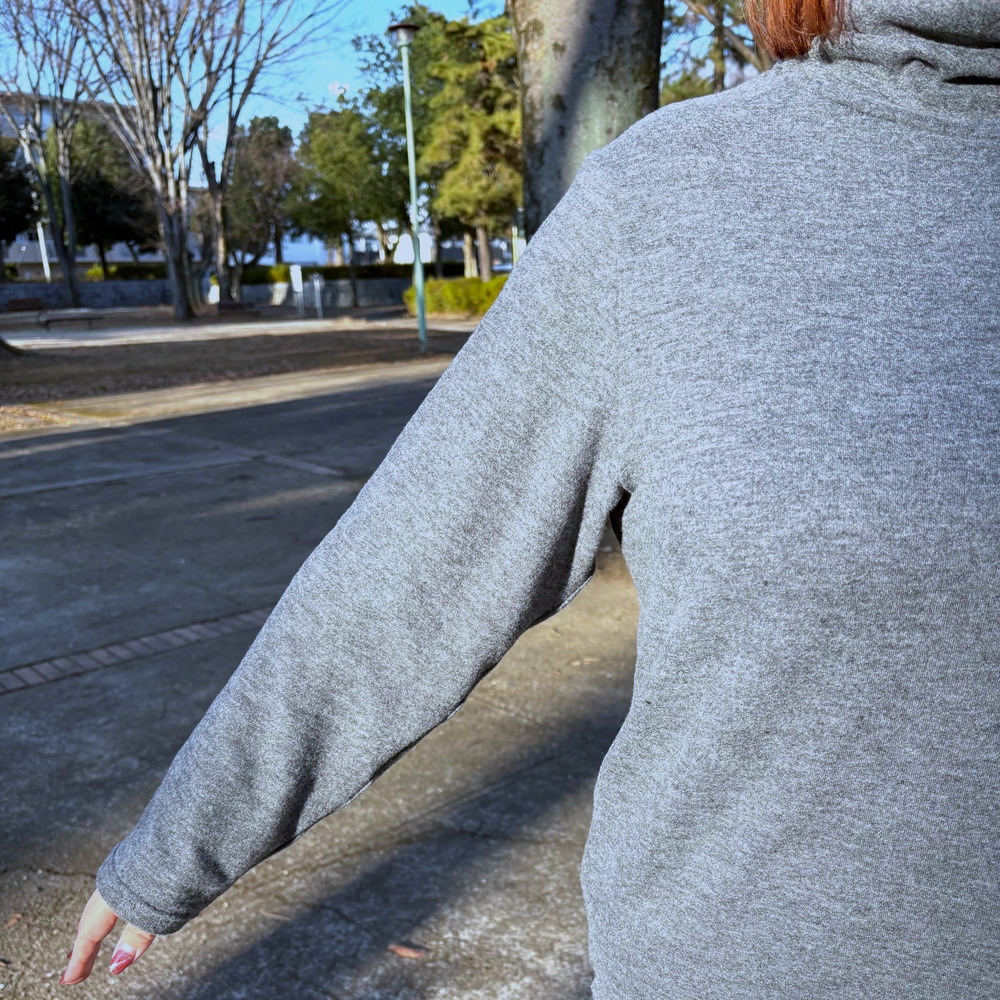 ネック部分はサイドゴム仕様で、自然なくしゅ感が生まれる立体的なデザイン。