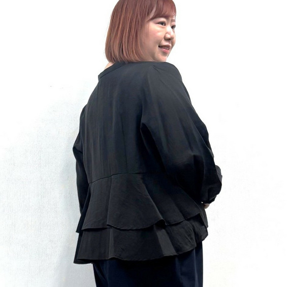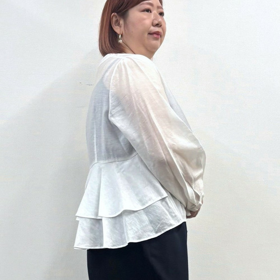 華やかなペプラムシルエットが女性らしい印象を引き立てるブラウス。
