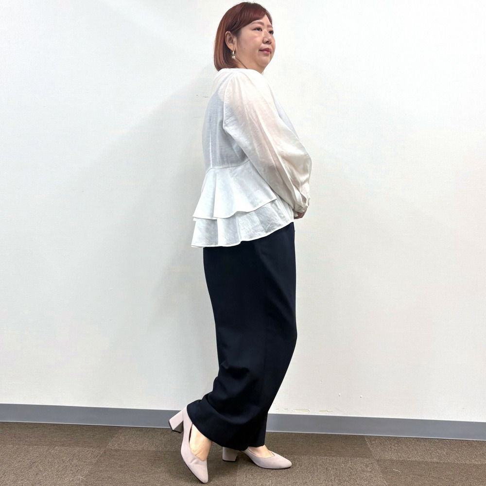 生地の落ち感がきれいなラインを作り、自然なスタイルアップ効果も◎。