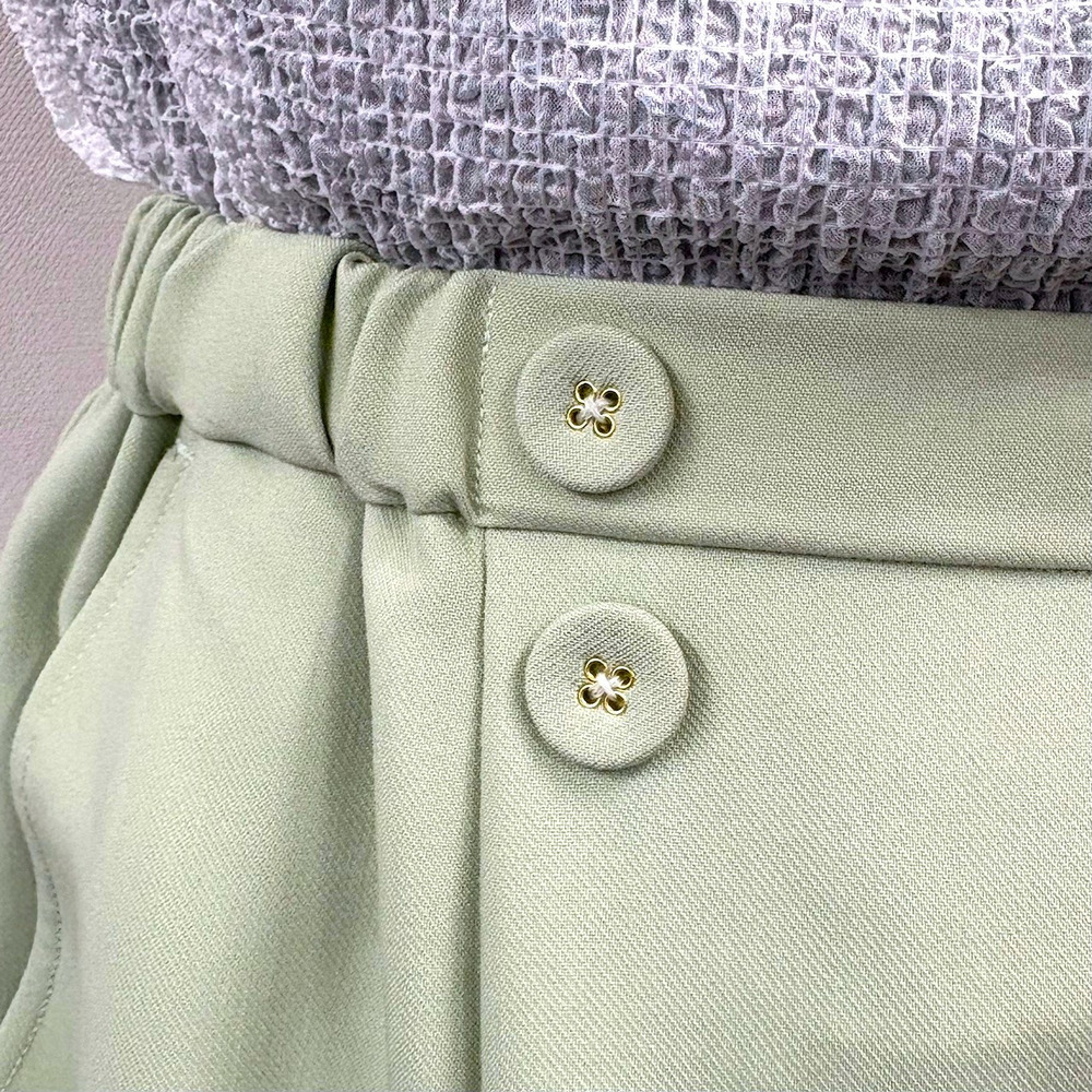 トップスインでもきれいに決まるボタンデザインで、