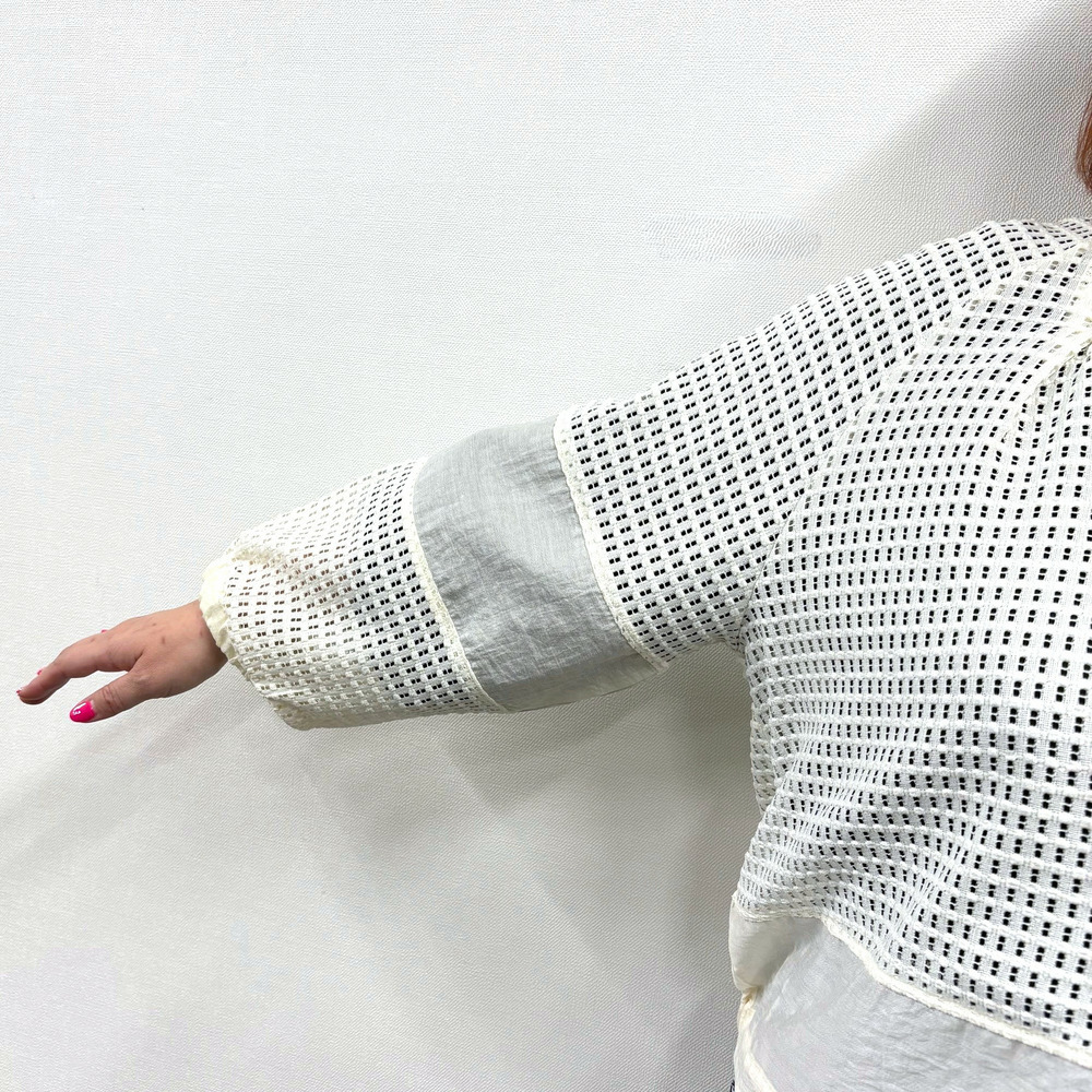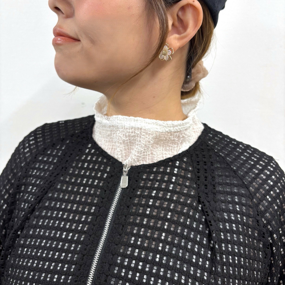 メッシュの編地が可愛らしさと程よい抜け感を演出する、軽やかなデザイントップス。