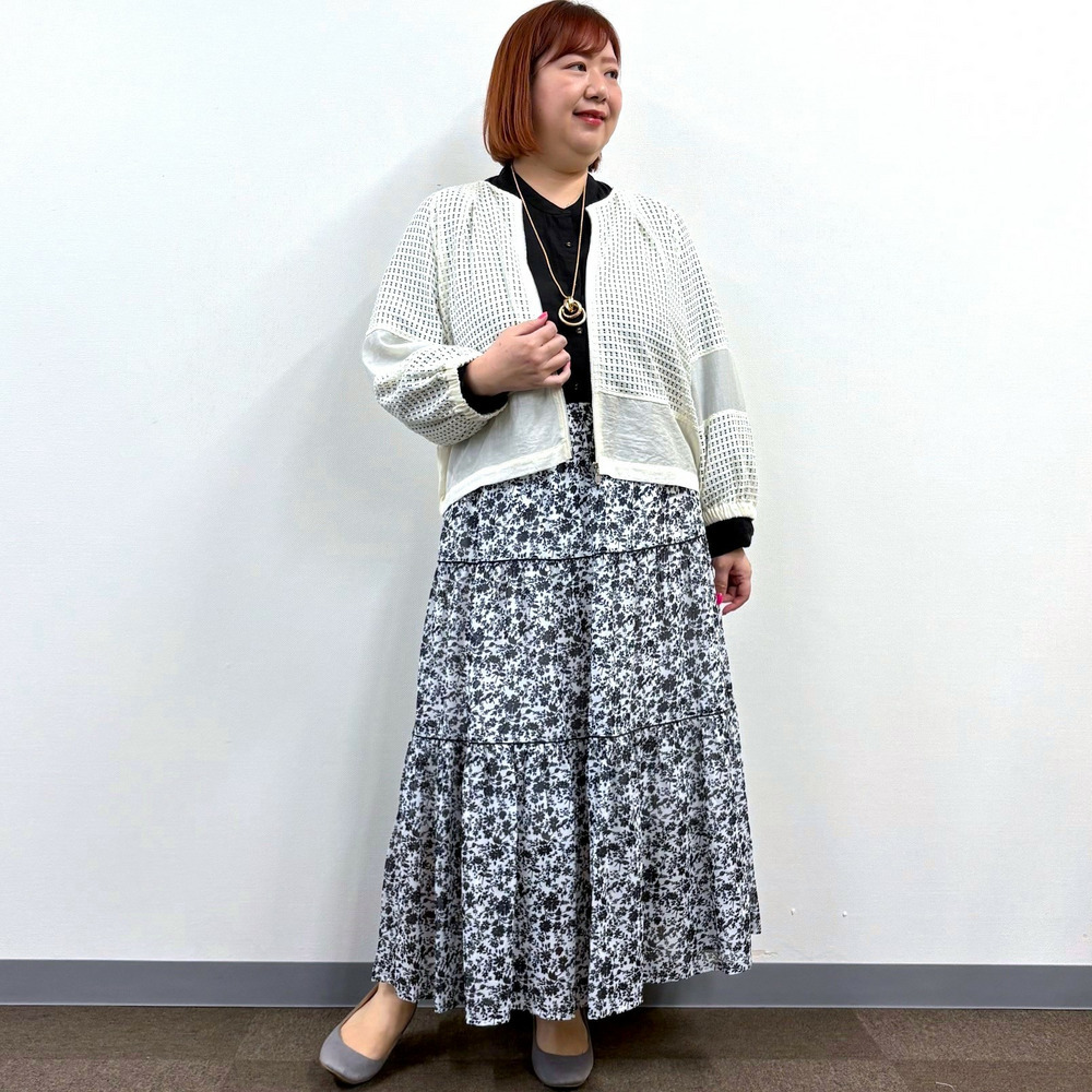 スカートやワンピースとも合わせやすい丈感で、さまざまなスタイリングに活躍します。