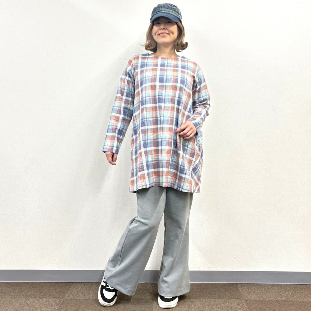 ナチュラルな色合いのチェック柄がやさしい雰囲気を演出するチュニック。