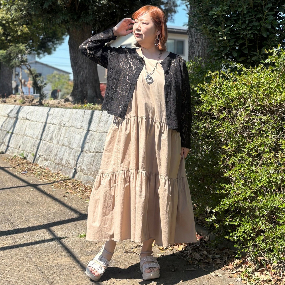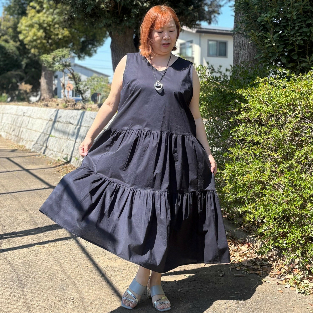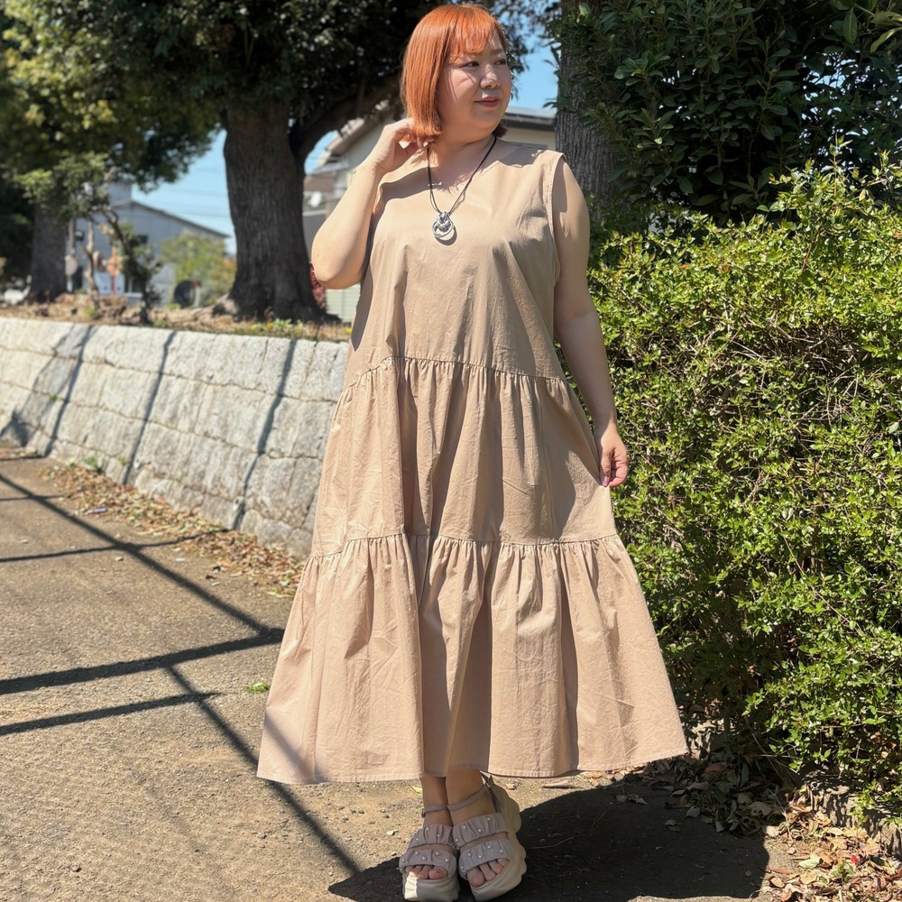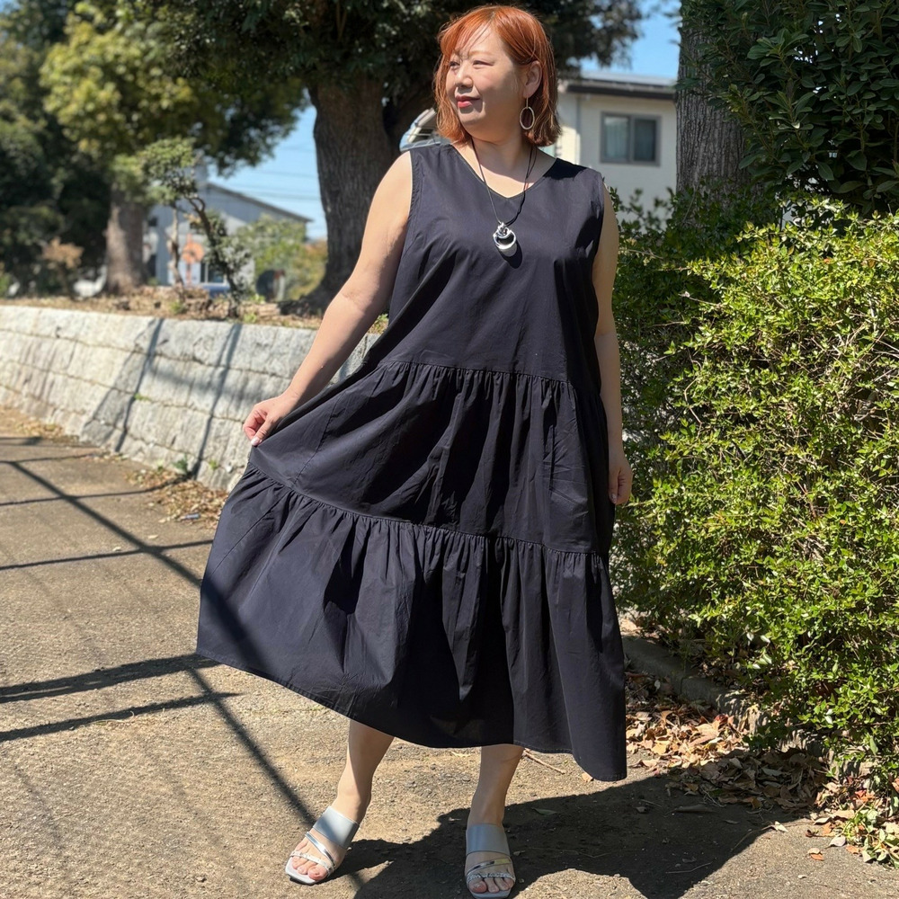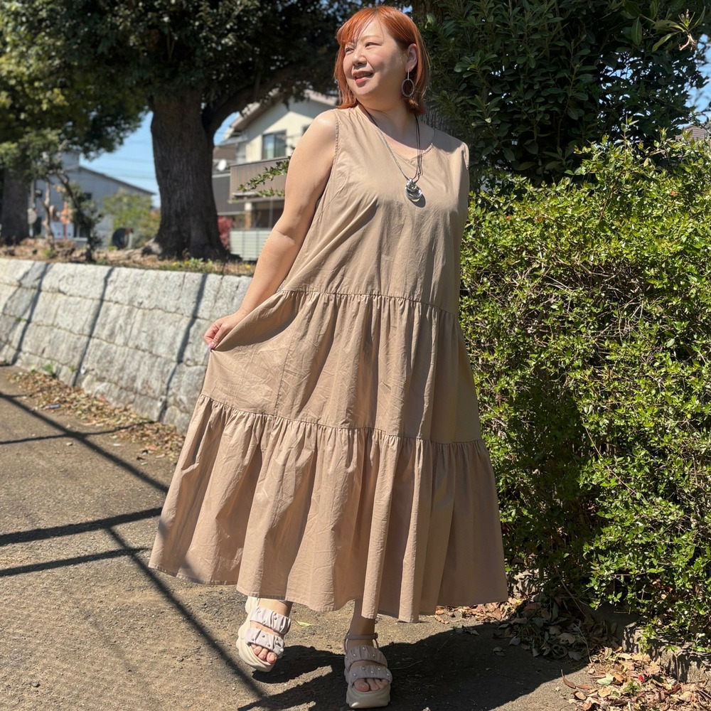 • [LL・3L]綿ノースリーブティアードワンピース1