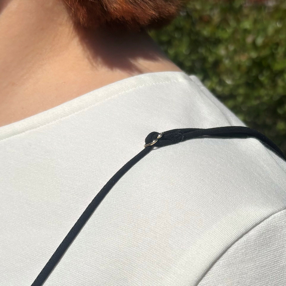 肩紐にはアジャスターが付いており、身長やスタイリングに合わせて丈感の調整が可能。