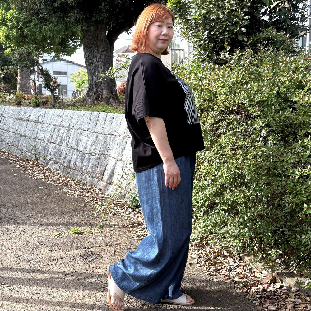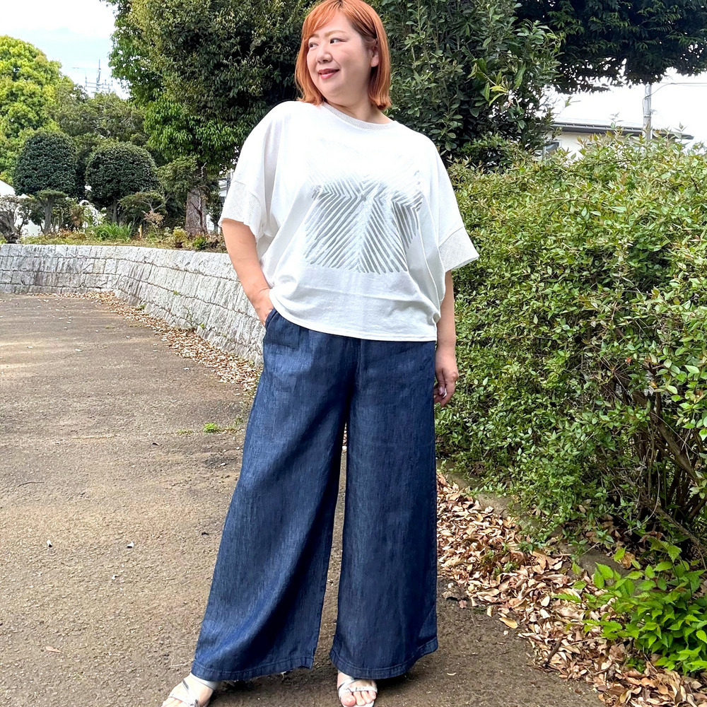 体のラインを拾いにくく、気になる二の腕や身幅もやさしくカバーしてくれます。