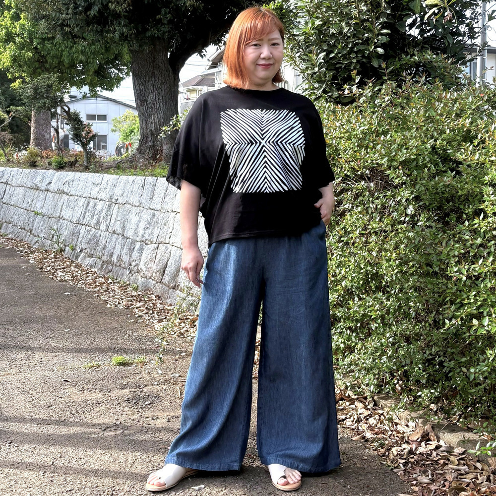 ゆるっとしたシルエットながら、ドルマンスリーブ特有の落ち感で自然とすっきり見えが叶うのがポイント。