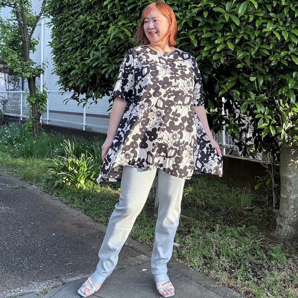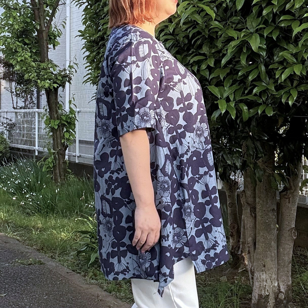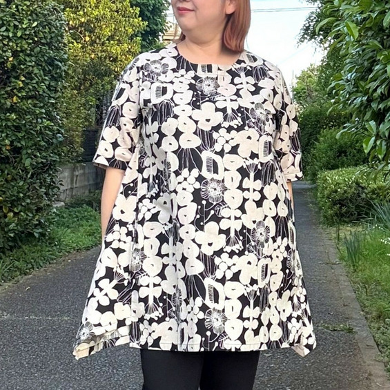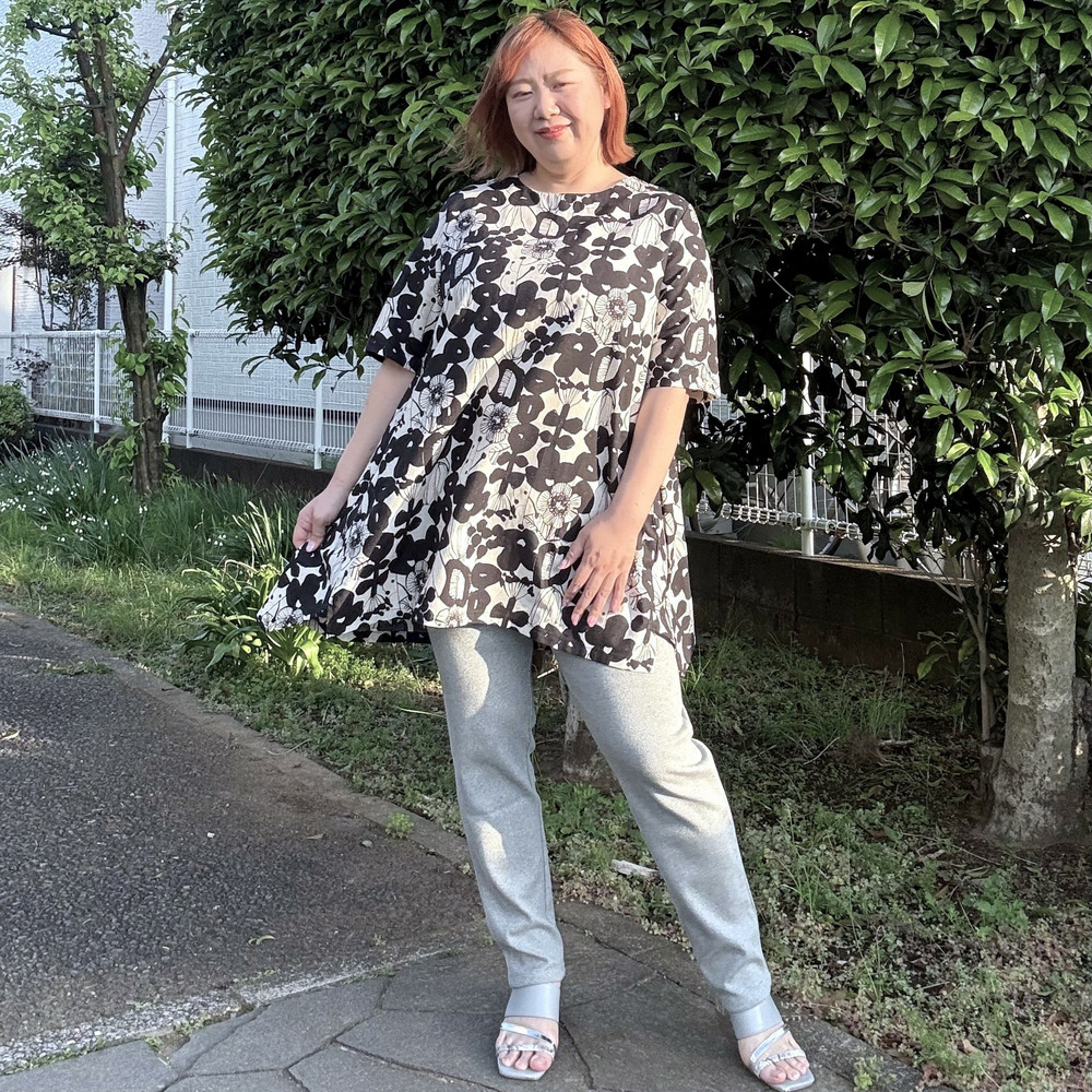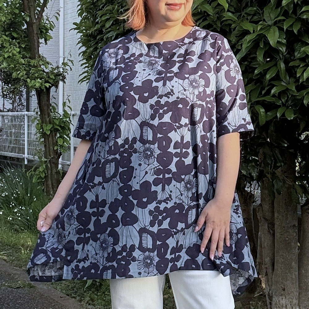 [3L-9L][日本製]Linneaボタニカル綿麻シーチング裾切替チュニック