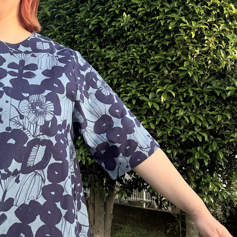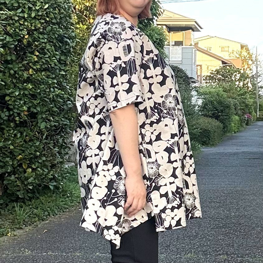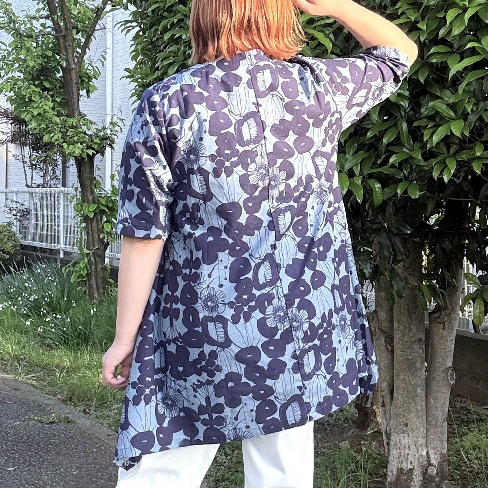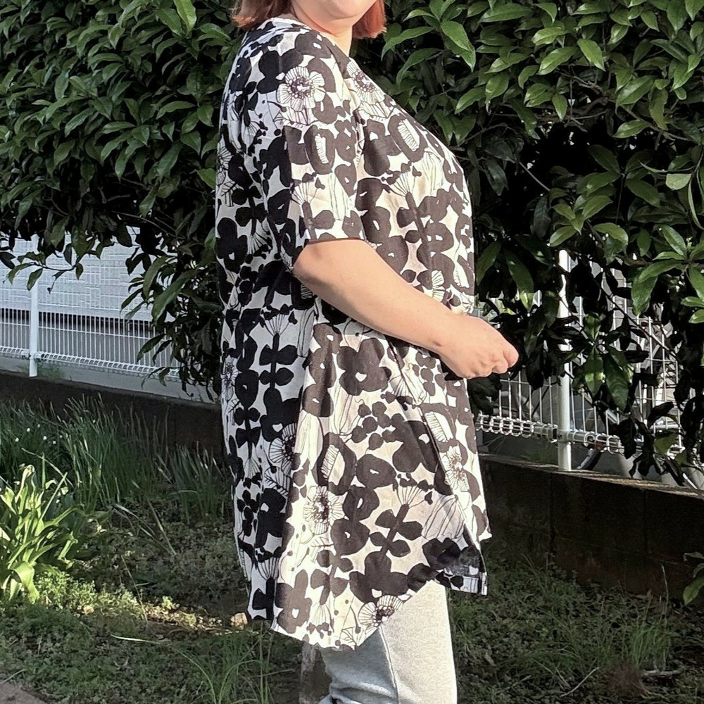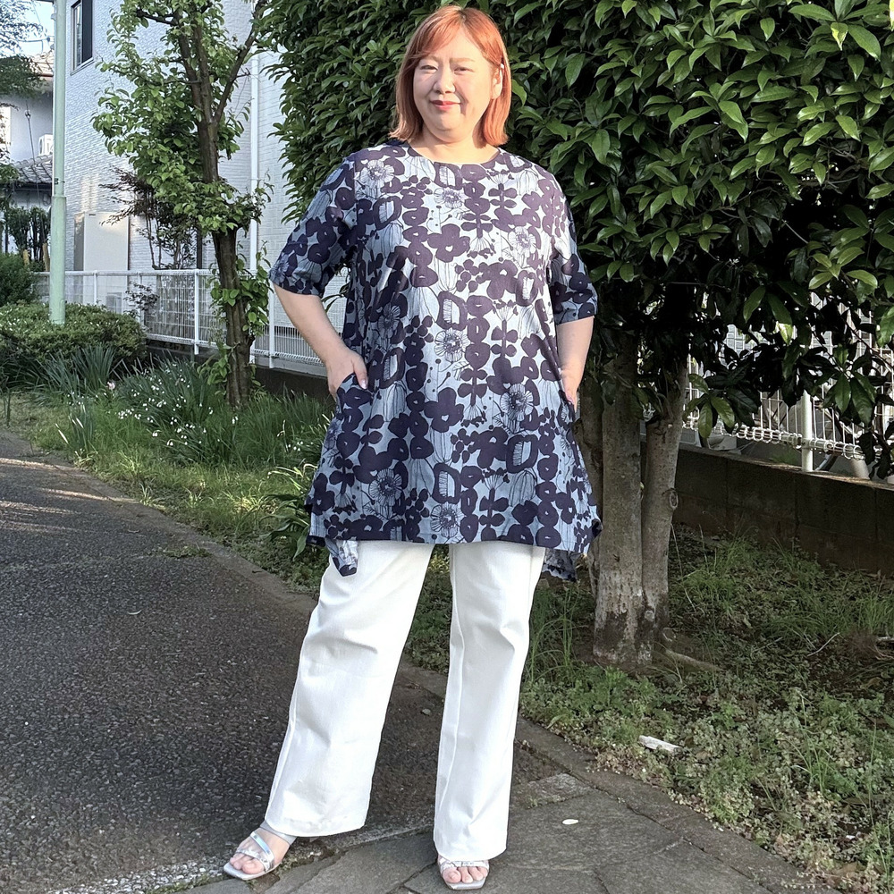 [3L-9L][日本製]Linneaボタニカル綿麻シーチング裾切替チュニック