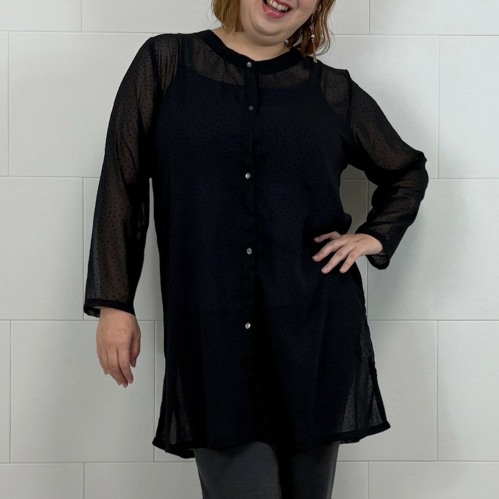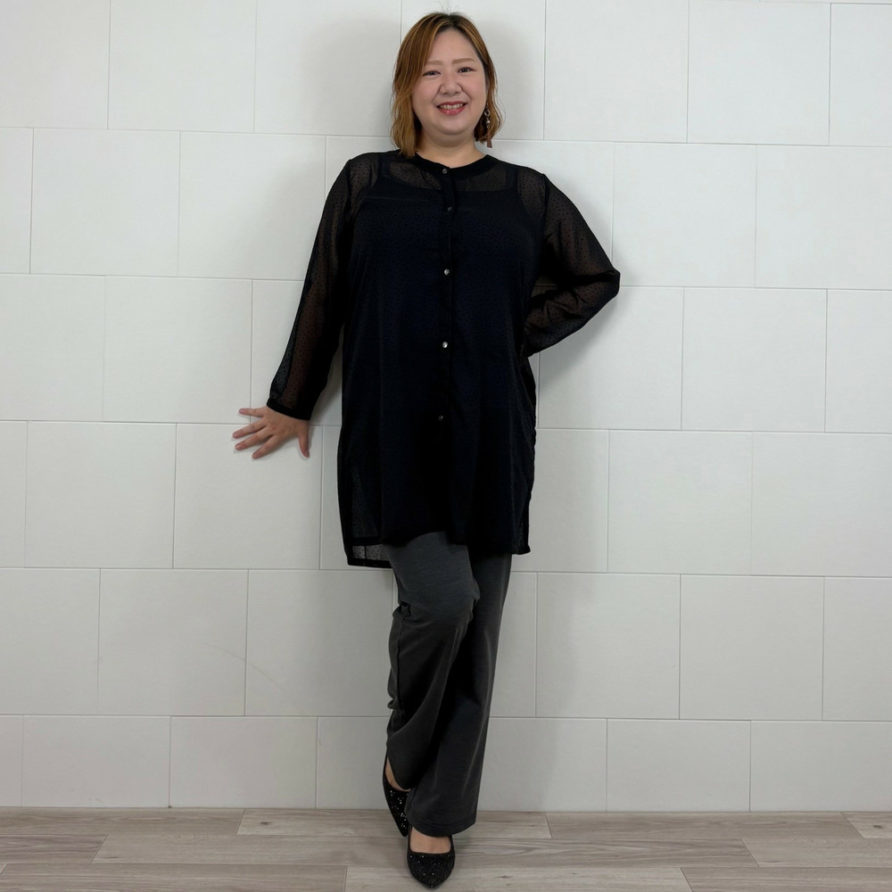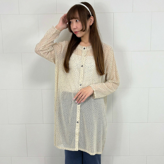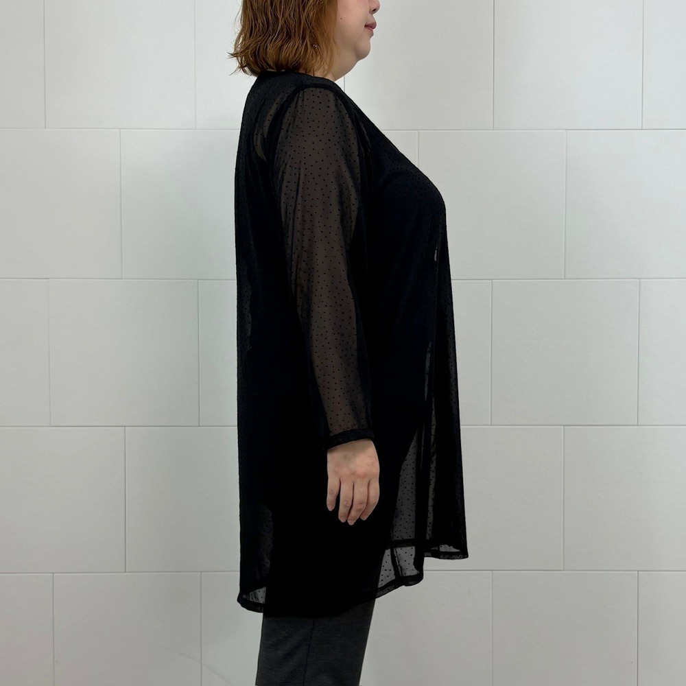 • [3L-5L][日本製]フロッキードットプリントシアーロングカーディガン1