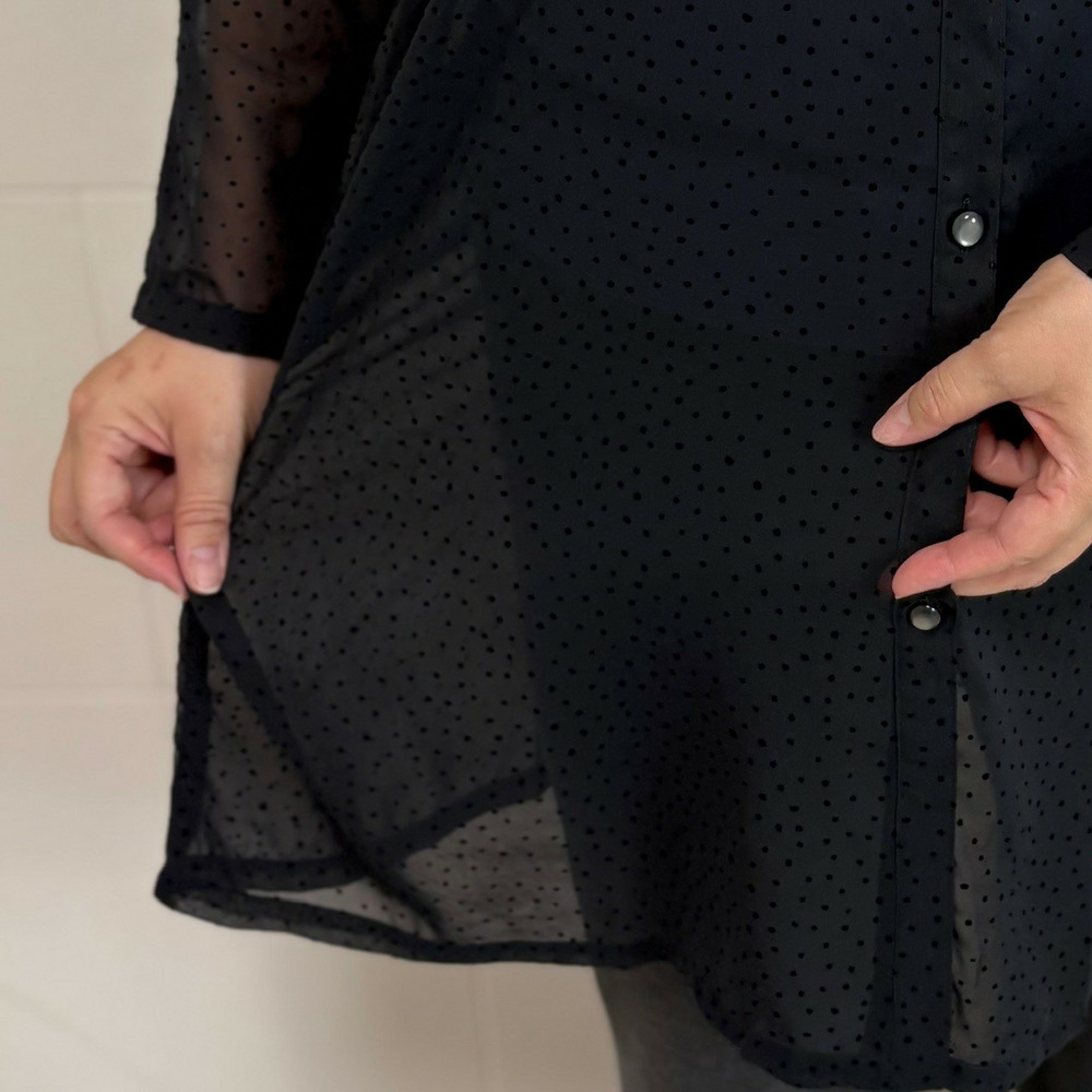 • [3L-5L][日本製]フロッキードットプリントシアーロングカーディガン2